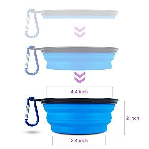 Newest Design: The depth is adjustable. Portable size dog bowl of 4.4 inches wide top diameter, 3.4 inches wide bottom diameter, 2 inches height and only 1/2 inch thick while folded. Pet bowls holds up to 12 fluid ounces of water or 1.5 cups of dog food each