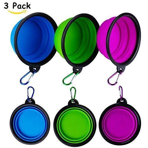Three Pack Set: Package includes three pieces of pet travel bowl, three metal carabiners. Colors are purple, green and blue, dry 100% and no moldy smell. More sanitary. A clean pet bowl every day for your dog GDPETS dog bowl travel offers a 30-day no-hassle full money refund guarantee and 24-month warranty. Any questions please contact us through e-mail, we reply within 24 hours and we will find right solution for you