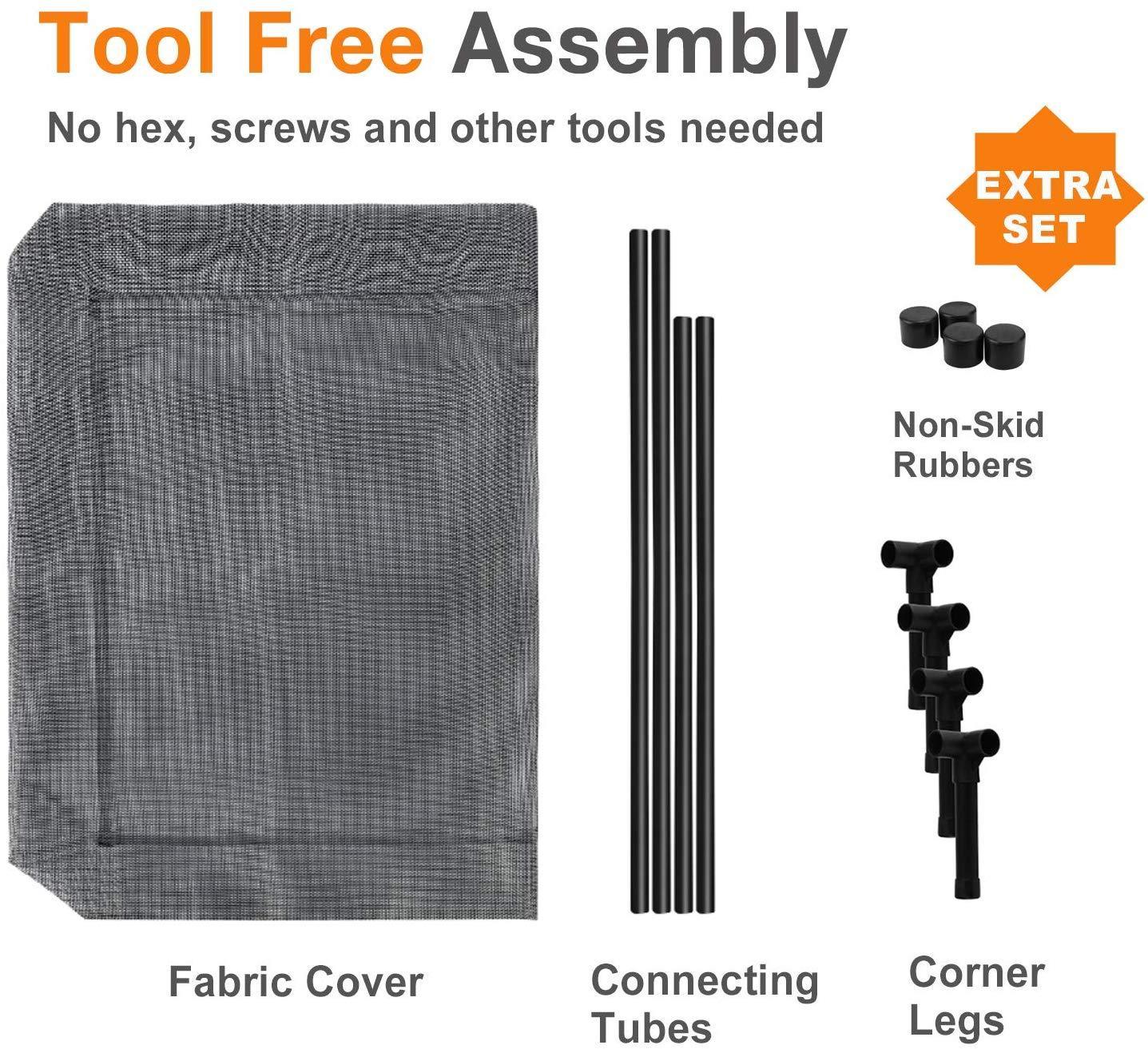 【Durable Fabric】- The scratch proof and tear-resistant fabric provides strong support for dogs and efficiently prevents the dog cot from sagging. The mesh could be easily cleaned with soap and water. 【Breathable Design】- The elevated dog bed lifts your pet off the grounds more than 7 inches, which allows air to follow freely from all directions. It helps your dog to keep cool in the summer and warm in the winter. 【Travel Friendly】- The lightweight and portable outdoor dog bed makes it convenient for you when traveling, camping, and boating with your furry friend. Simple, tool-free assembly with non-skid rubber feet. 【Trustable Choice】- The raised dog bed measures 40 x 30 x 7.8 inch with a maximum weight capacity of 120 lbs. With its strong stability and high-load bearing capacity, the dog cot is ideal for large dogs such as Labrador, Golden Retriever and German Shepherd. 【Manufacturer’s Warranty】- We will provide a 1-year warranty to replace any defects in our product, 30 days no-hassle refund/return and customer support from Mora Pets