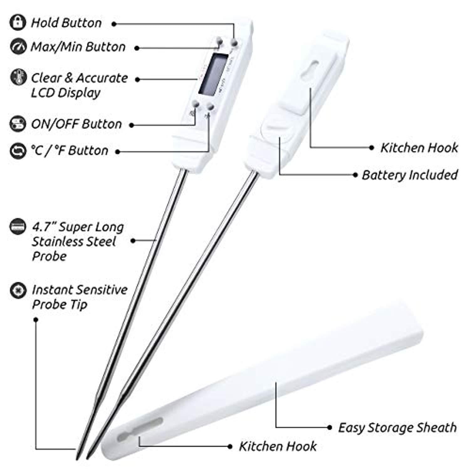 Cooking Food Thermometer Digital Instant Read Meat Thermometer Grill Thermometer BBQ Thermometer High Accuracy Kitchen Thermometer for Oil Water Milk Tea Beer (White)