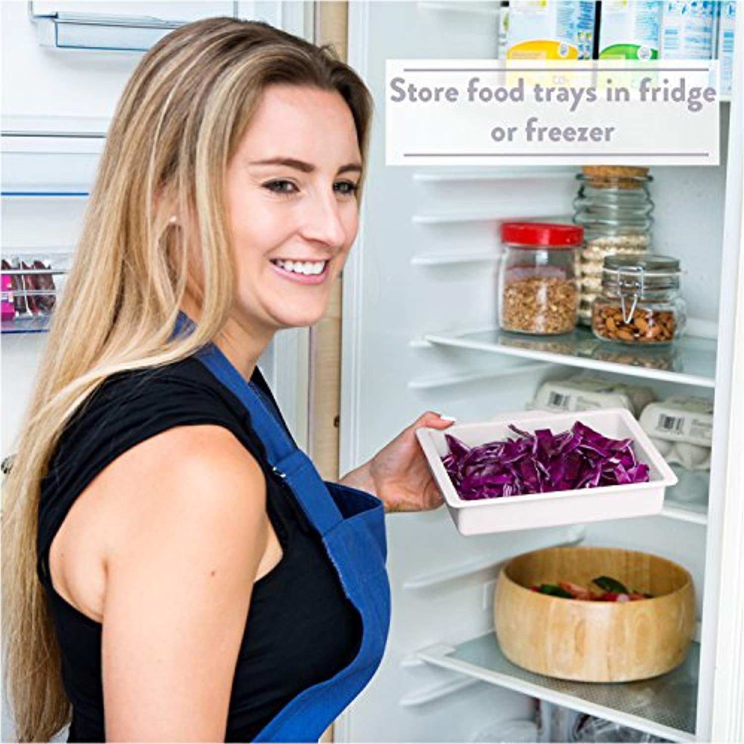 Cutting Board with Trays - Organic Acacia Wood Butcher Block with Containers White Pale Blue - Naturally Antimicrobial - For Meat Vegetables Bread or Cheese Board by Kristie's Kitchen