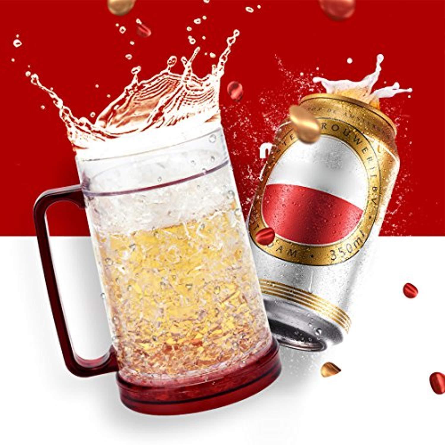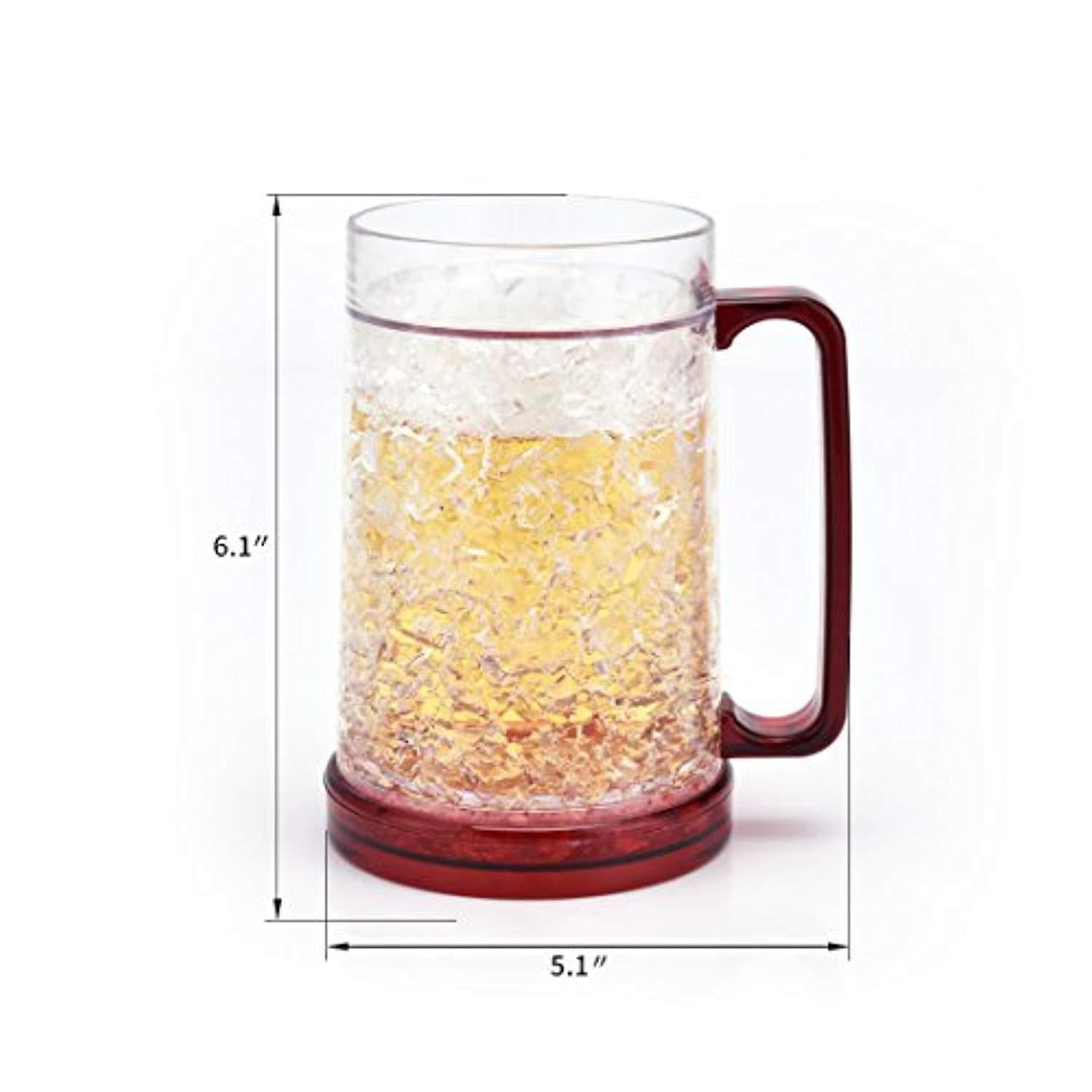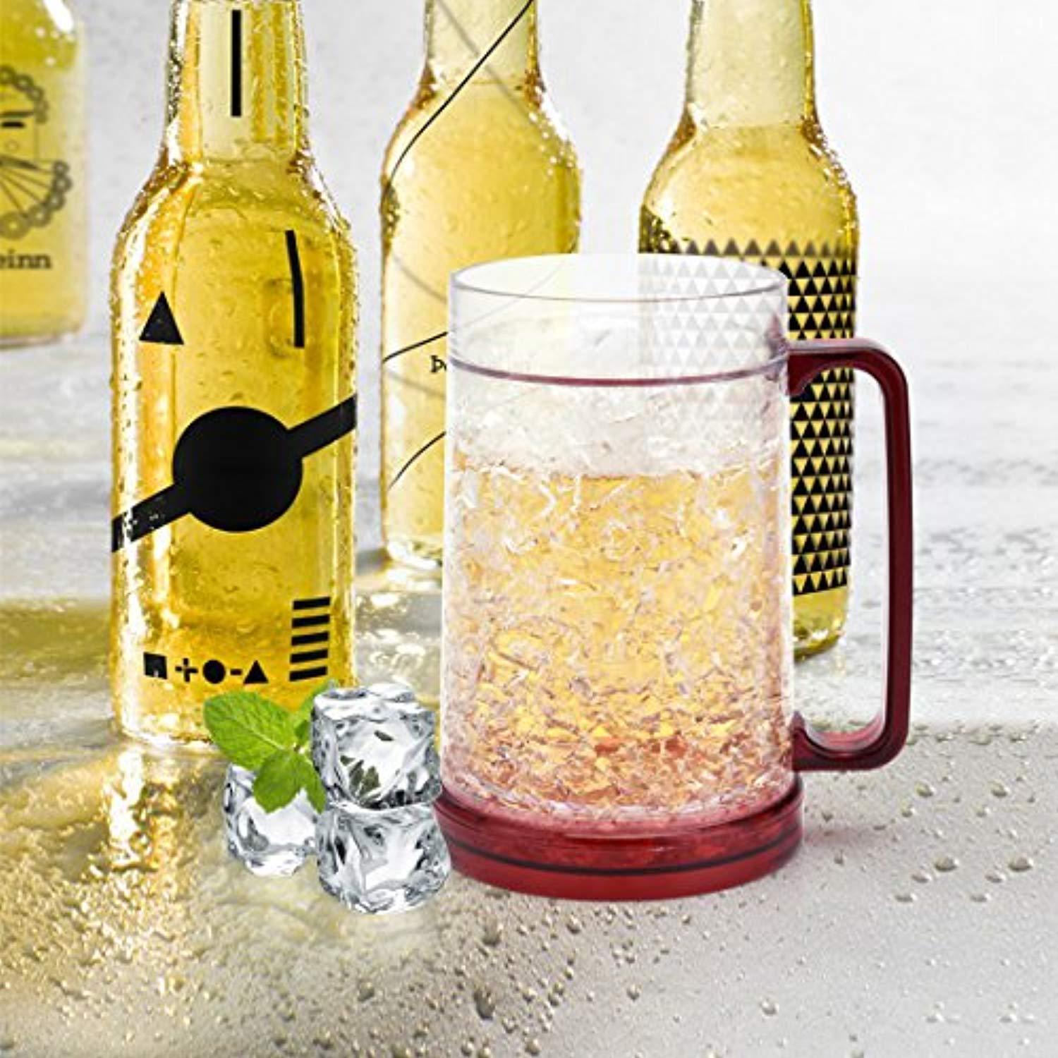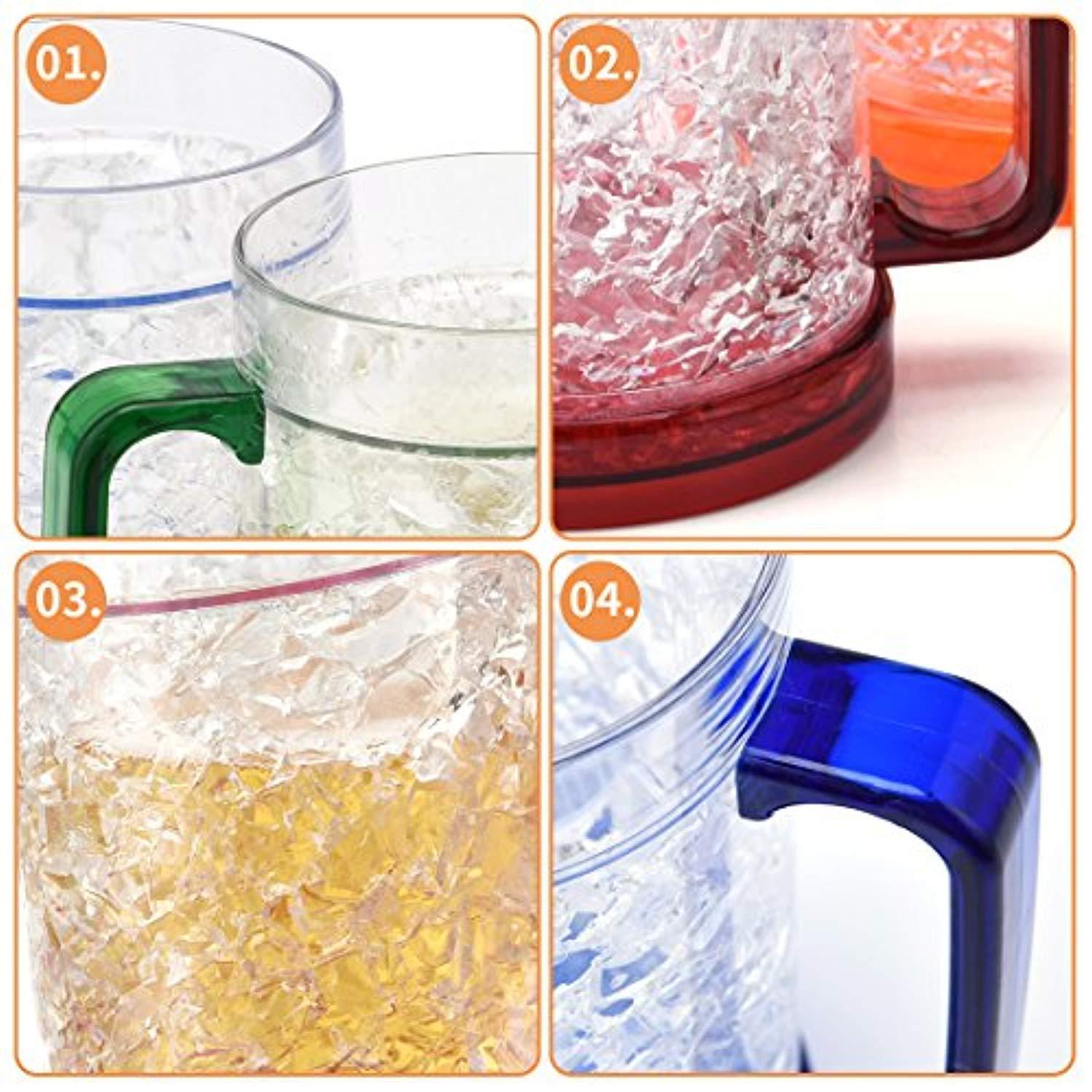 Double Wall Gel Freezer Beer Mug - Frosty Mugs Freezable Drinking Cups with Handle, Classic Style for Enjoying Beer, Juice, Soda at Parties, Outside Activity(Set of 4, Each for 15 oz)