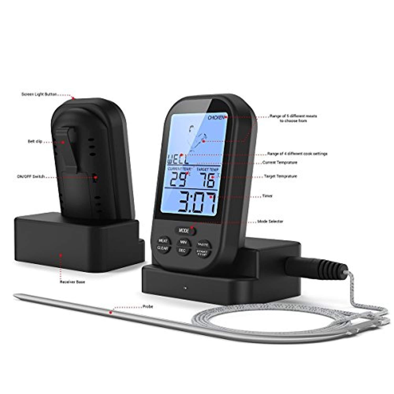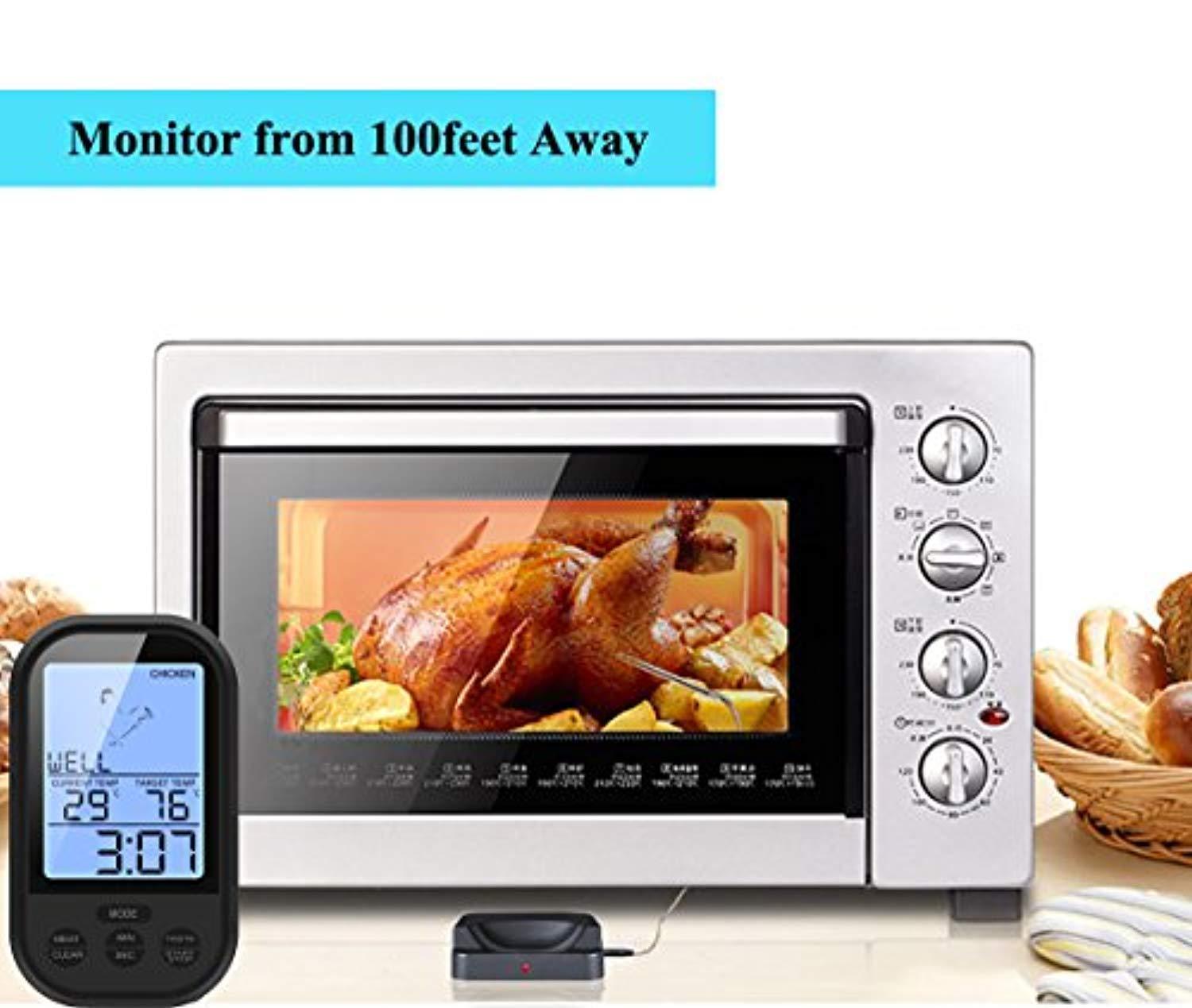 EAAGD Wireless Digital Meat Thermometer - Remote BBQ Kitchen Cooking Thermometer for Oven Grill Smoker with Timer-Included 2 Food Probe and 4 AAA Battery