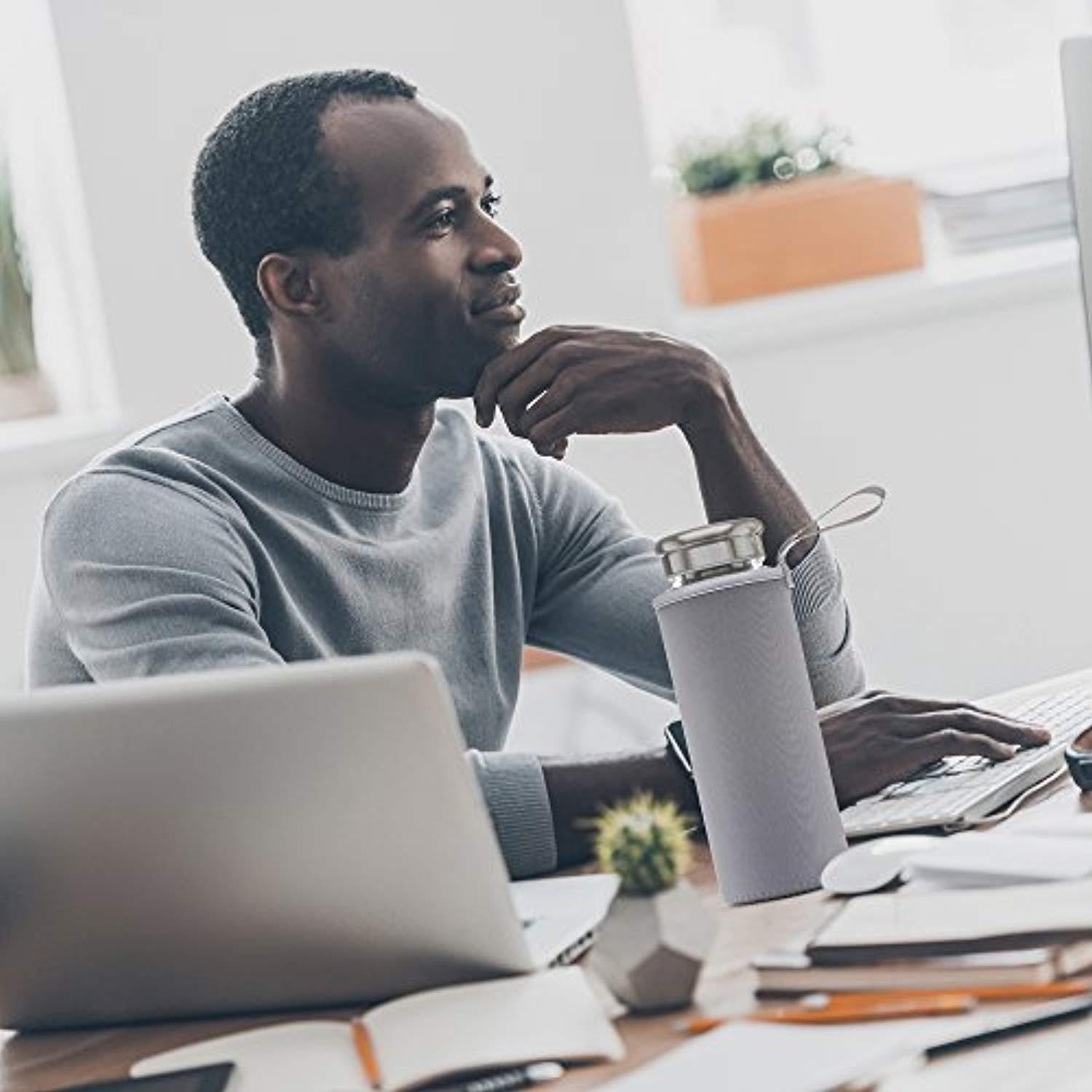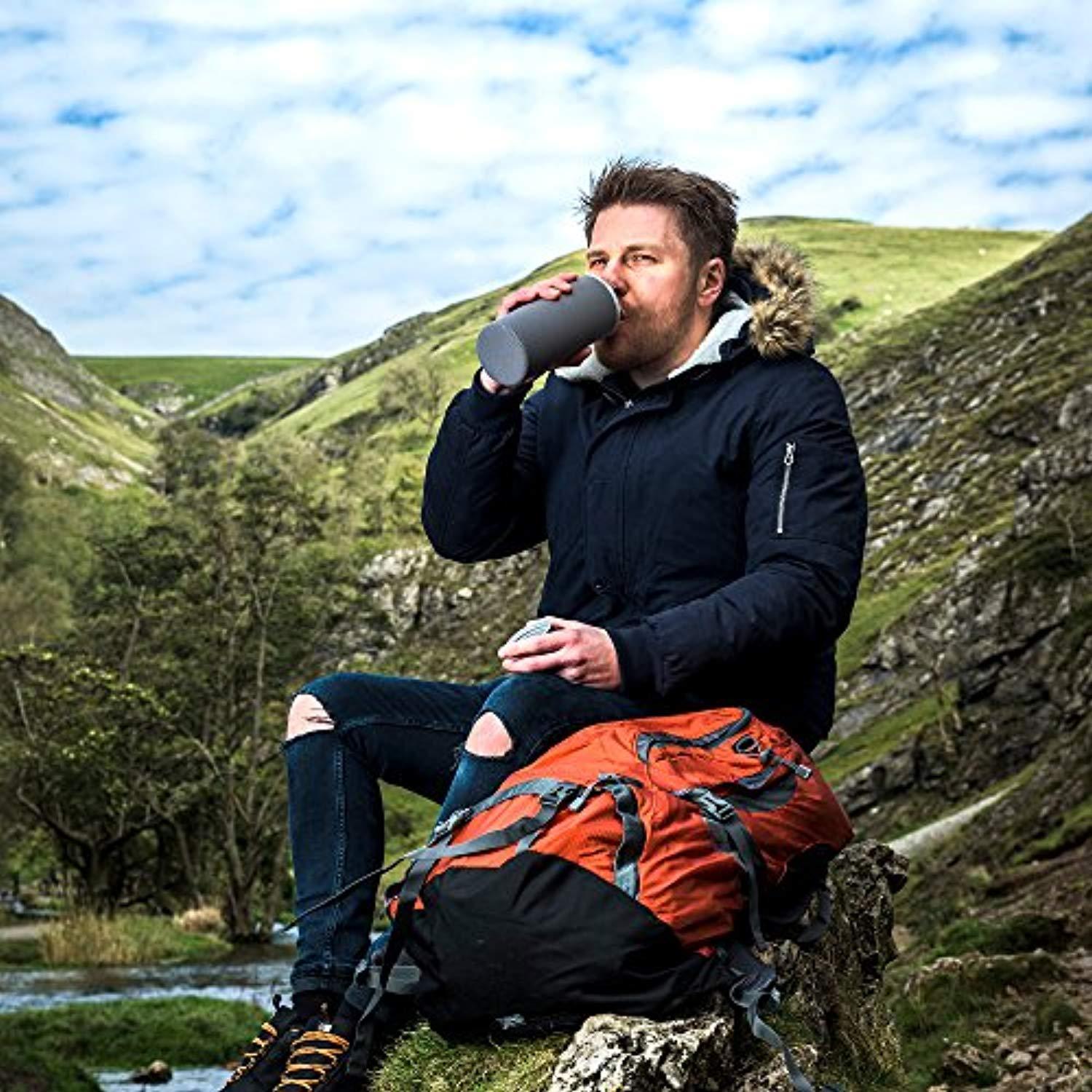 - DESIGNED WITH SAFETY IN MIND – The Eilde travel tumbler is made from super-tough bpa-free borosilicate glass. The lid has a leakproof airtight seal and the strong, insulated thermos koozie will keep your beverage cool for hours.