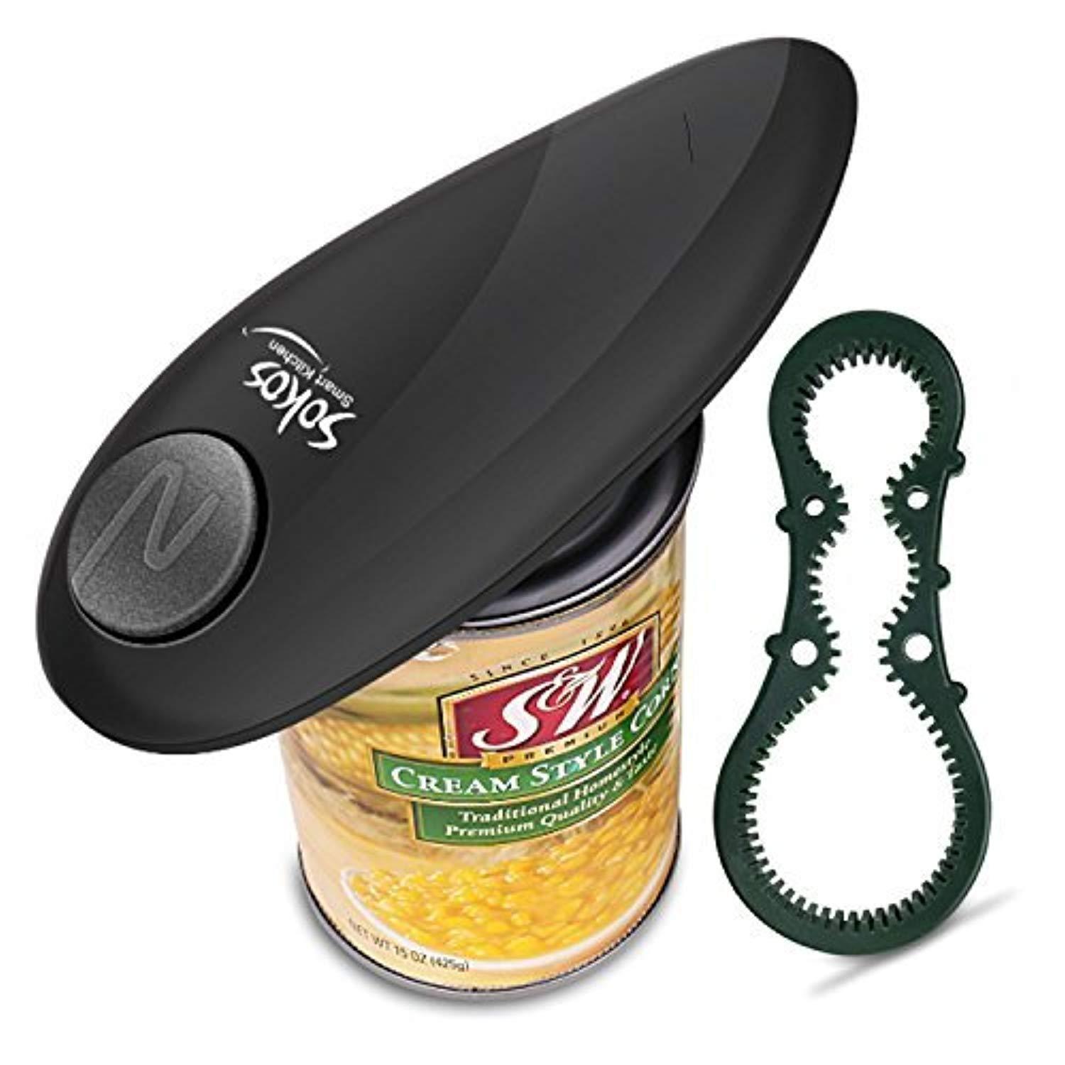 Electric Can Opener, 2AA Batteries Operated Smooth Soft Edge with One-Touch Start Automatic Can Opener for Arthritis Individuals, Seniors (Black)