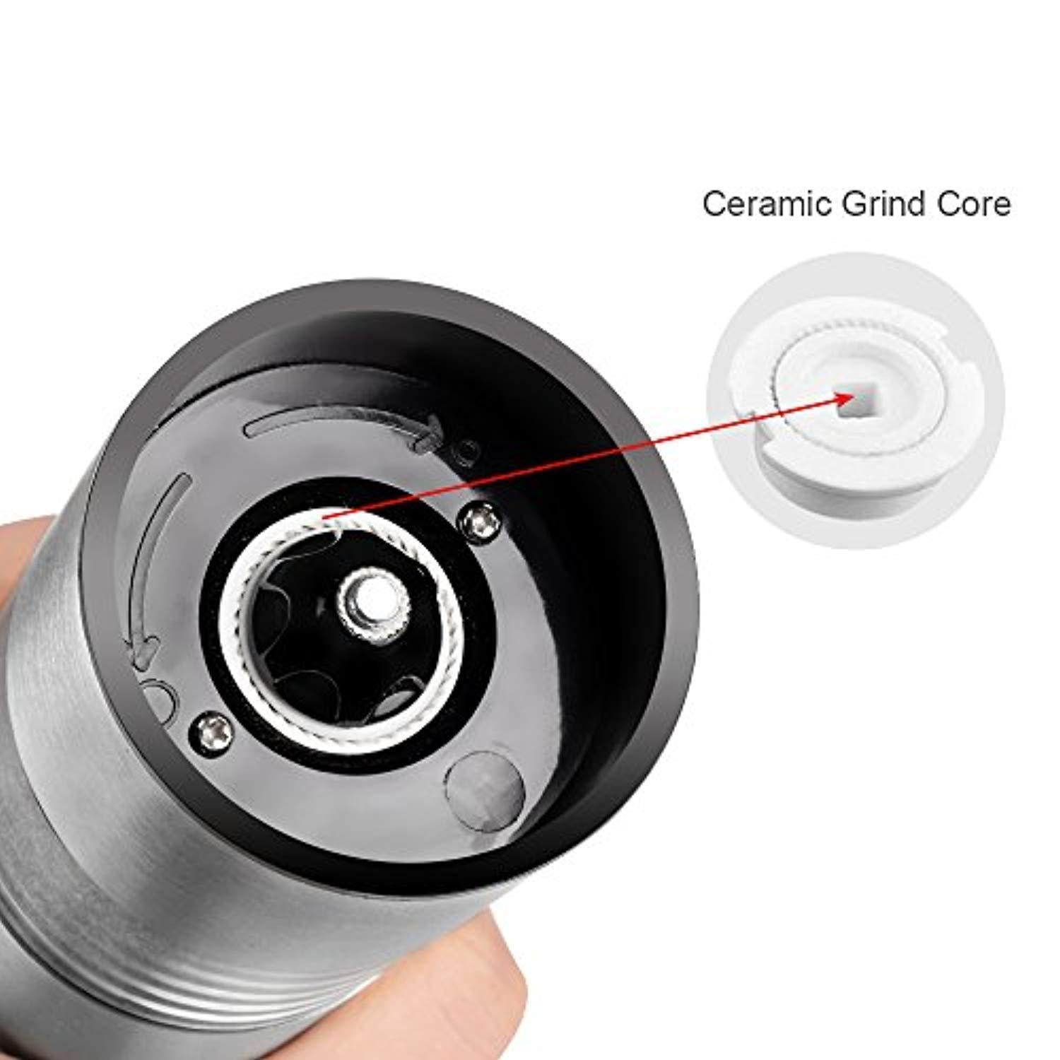 *REGULATE COARSENESS TO YOUR NEEDS: One of the greatest things about this salt and pepper ceramic grinder set is its adjustable coarseness. Control the thickness depending on your cooking needs. From fine to coarse and vice versa our electric salt and pepper grinders will never let you down. Just turn the knob and let it do the rest.