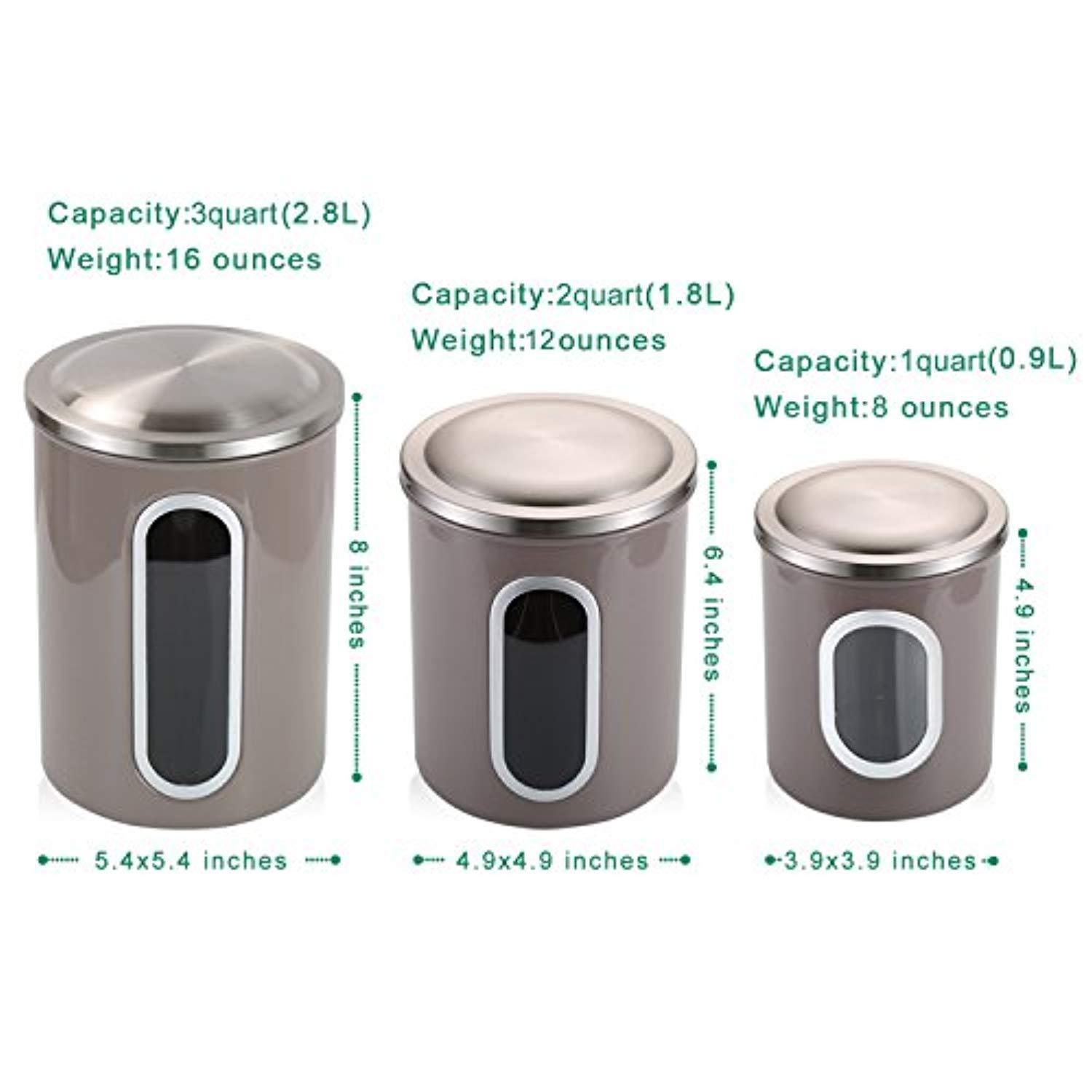 FC Airtight Window Kitchen Canister, Stainless Steel Canister Sets with Anti-Fingerprint Lid, Cereal Container Set of 3 (Warm grey)