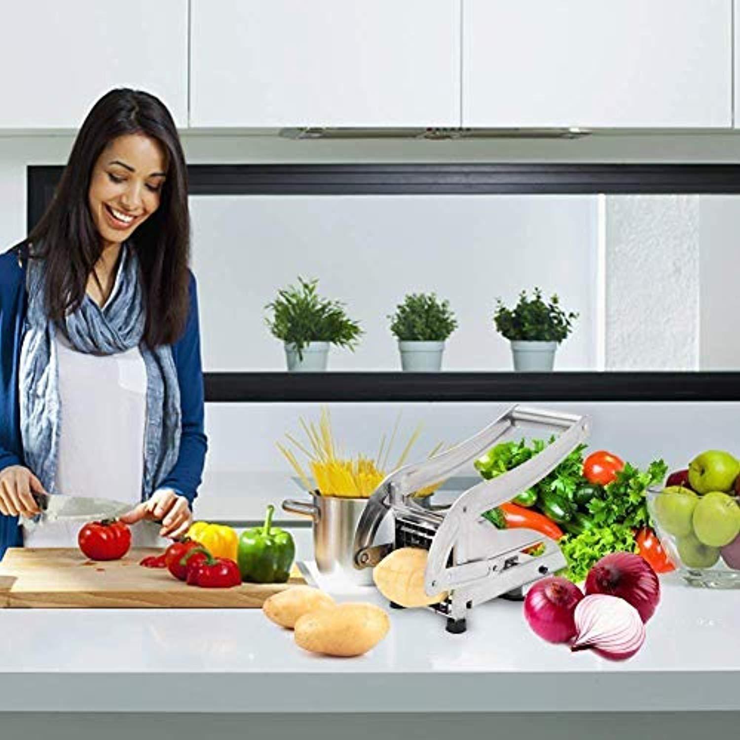 IKOCO French Fry Cutter Homemade Potato Chip Chipper with 2 Thickness Adjustable Stainless Steel Blades and Non-Slip Suction