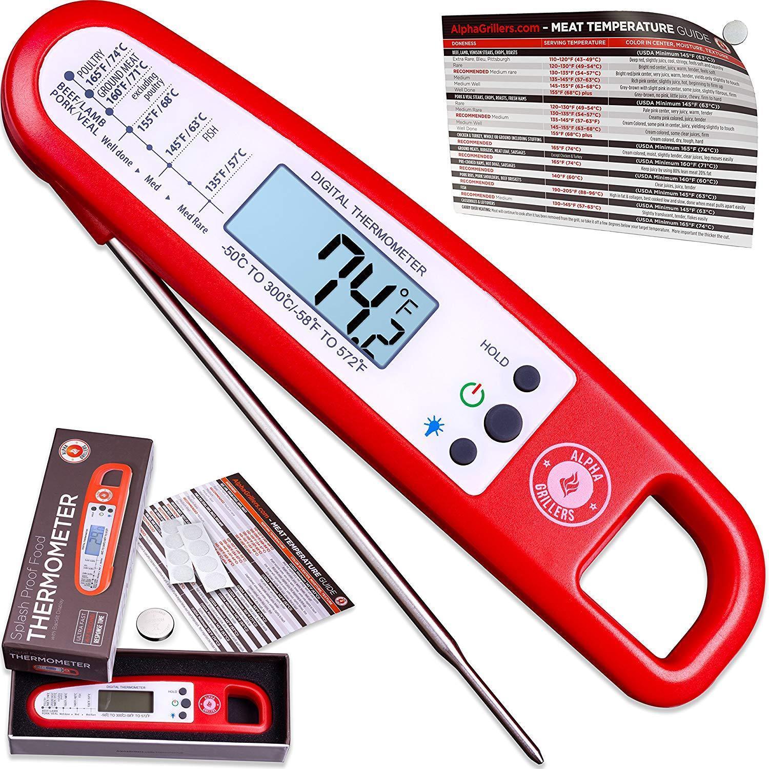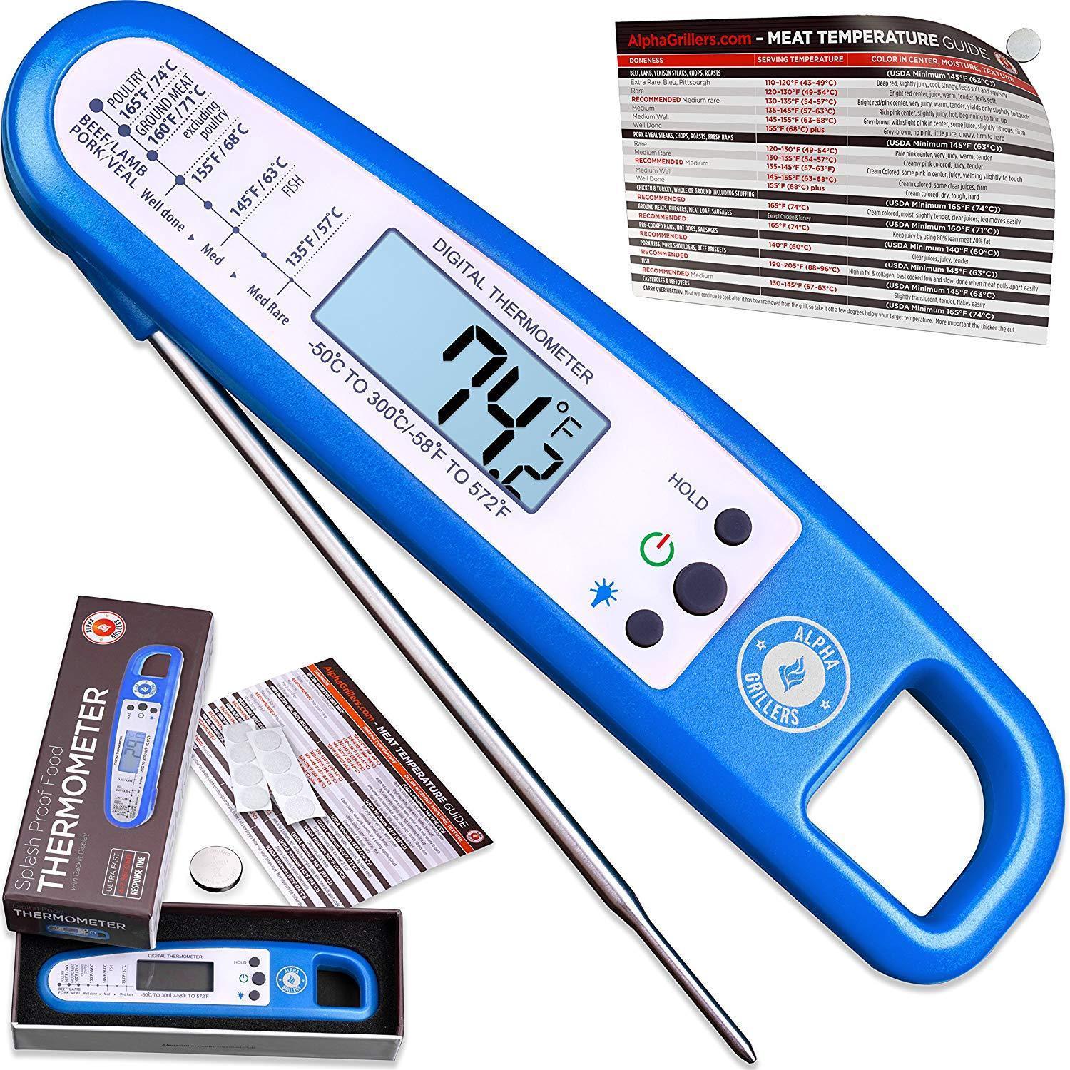 Instant Read Meat Thermometer For Cooking And Grill. UPGRADED WITH BACKLIGHT AND WATERPROOF BODY. Best Ultra Fast Digital Kitchen Probe. Includes Internal BBQ Meat Temperature Guide
