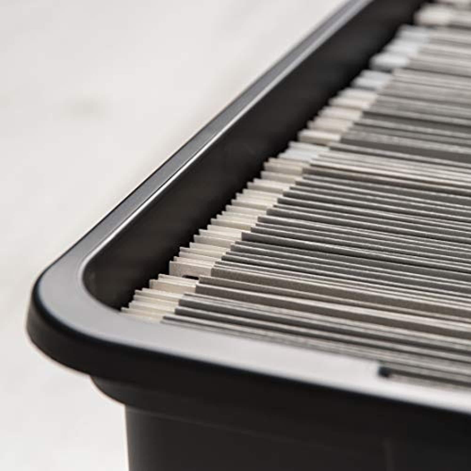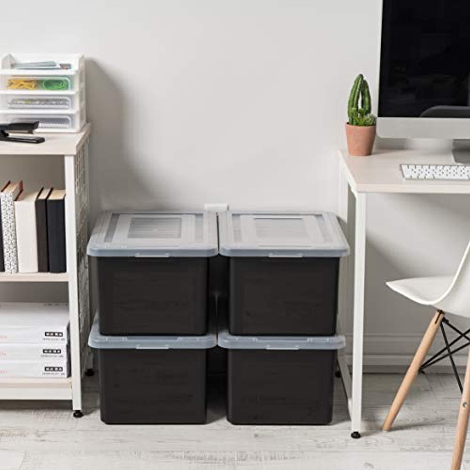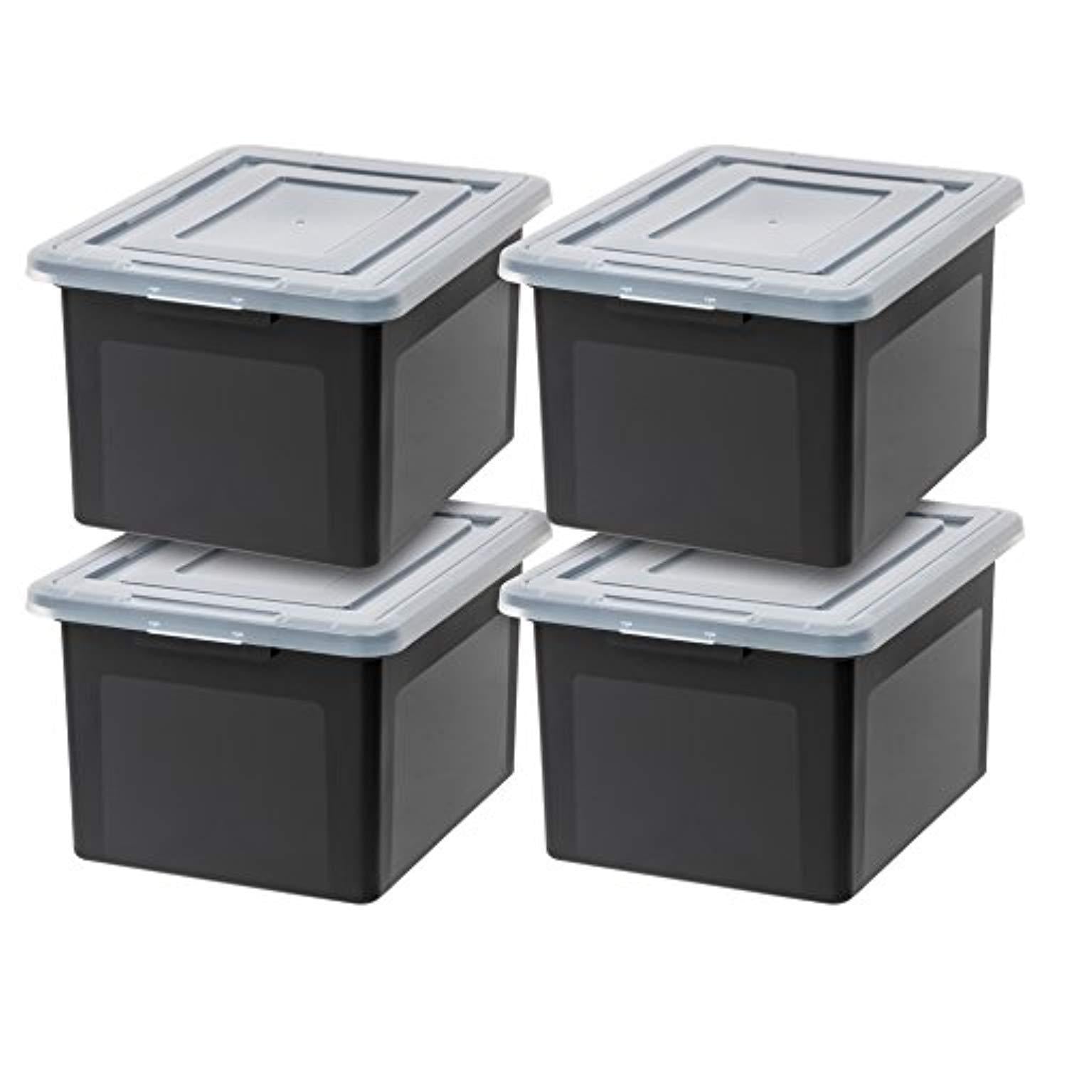 Maximize your file storage space with these durable plastic file boxes File storage container easily holds either letter or legal hanging file folders Snap tight plastic file storage lid keeps contents secure Stack multiple hanging file totes on top of each other to save space This letter and legal size file box is made of durable economical repurposed raw material