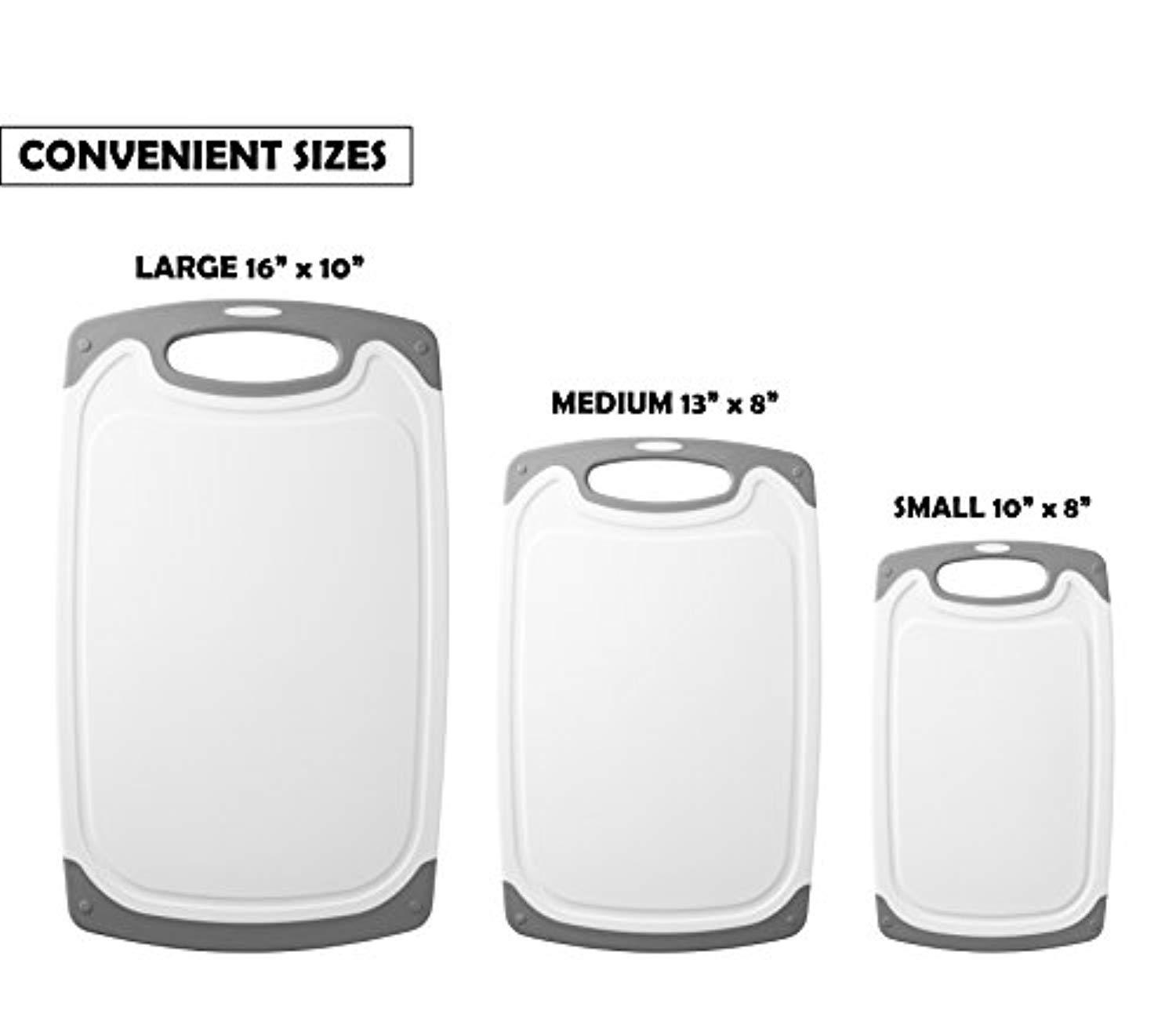 Konpex Cutting Boards for Kitchen | Plastic Chopping Board Set of 3 Great sizes Dishwasher Safe | BPA Free (Gray)