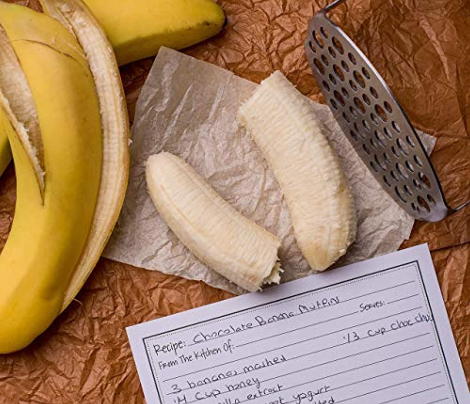 KUKPO Stainless Steel Potato Masher with Broad and Ergonomic Horizontal Handle – Fine-grid Mashing Plate for Smooth Mashed Potatoes, Vegetables and Fruits