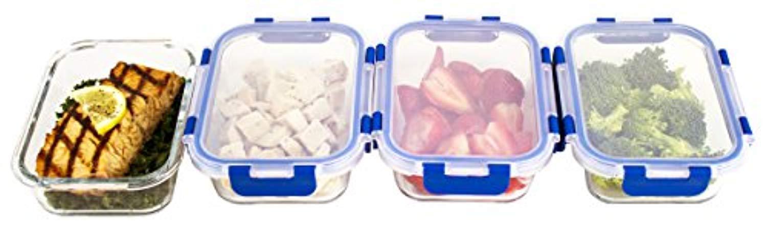 [LARGER PREMIUM 4 SET] 950 ML Glass Meal Prep Containers with Lifetime Lasting Snap Locking Lids Glass Food Containers BPA-Free, Microwave, Oven, Freezer and Dishwasher Safe (32 Oz.)