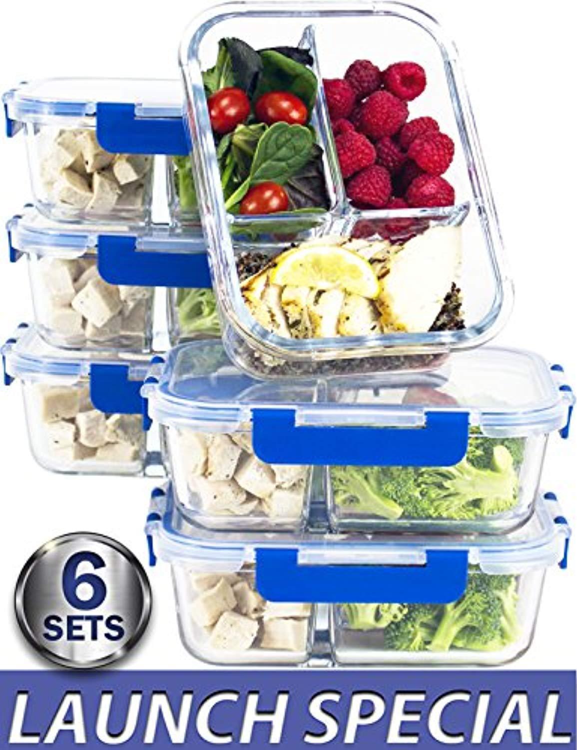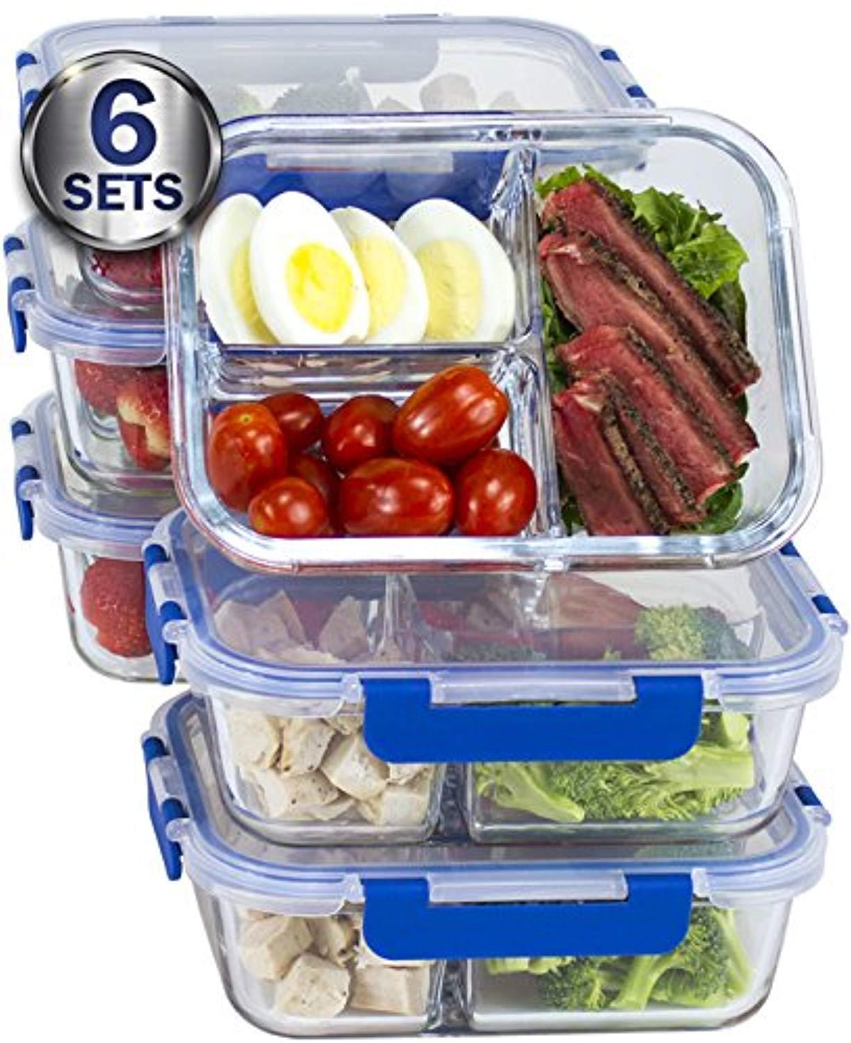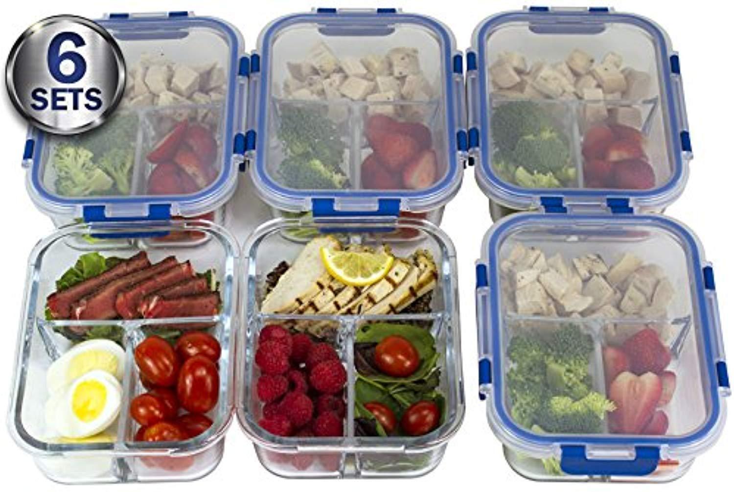 LIFETIME GUARANTEED LIDS– Misc Home Glass Food Storage containers use snap lock lids that last forever with silicone seals to ensure your meal prep food will last much longer than normal plastic food storage containers or Tupperware sets. These lids are easy to use and will stop leaking and spills. These lids will not break or slowly stop working, we will replace any lids that have issues free of charge. PERFECT SIZE & BEST VALUE – 12 Piece Set 6 Three Compartment glass food storage containers and 6 snap locking lids, we guarantee we have the best quality products at the best price. 6- 36 Oz (4.5 Cups), 8” x 6.5” x 3” main compartment 2 Cups and small compartments 1.25 cups each, easy for meal prepping, saves space, and travels easily ONLY USE BOROSILICATE GLASS –Cheaper glass storage containers with lids will shatter or break in the microwave and oven, they do not use borosilicate glass. Our glass tupperware containers are made from borosilicate glass, much stronger than the tempered glass meal prep containers other brands sell. Pyrex containers are made from borosilicate glass because it is stronger and can hold up to temperature changes much better than cheaper glass food storage containers. Our 3 compartment glass meal FDA CERTIFIED FOOD GRADE SAFE & BPA FREE – Easy to use and easy to take care of, microwave safe, freezer safe, dishwasher safe, and oven safe for over 500 degrees Fahrenheit. 100% SATISFACTION GURANTEED & PERFECT GIFT – We guarantee your satisfaction or we will always go above and beyond to ensure you are happy with your customer experience with Misc Home Inc. Comes in full color packaging making it the perfect gift for anyone starting to do meal prepping or just in need of some 3 compartment meal perp containers glass with locking lids.