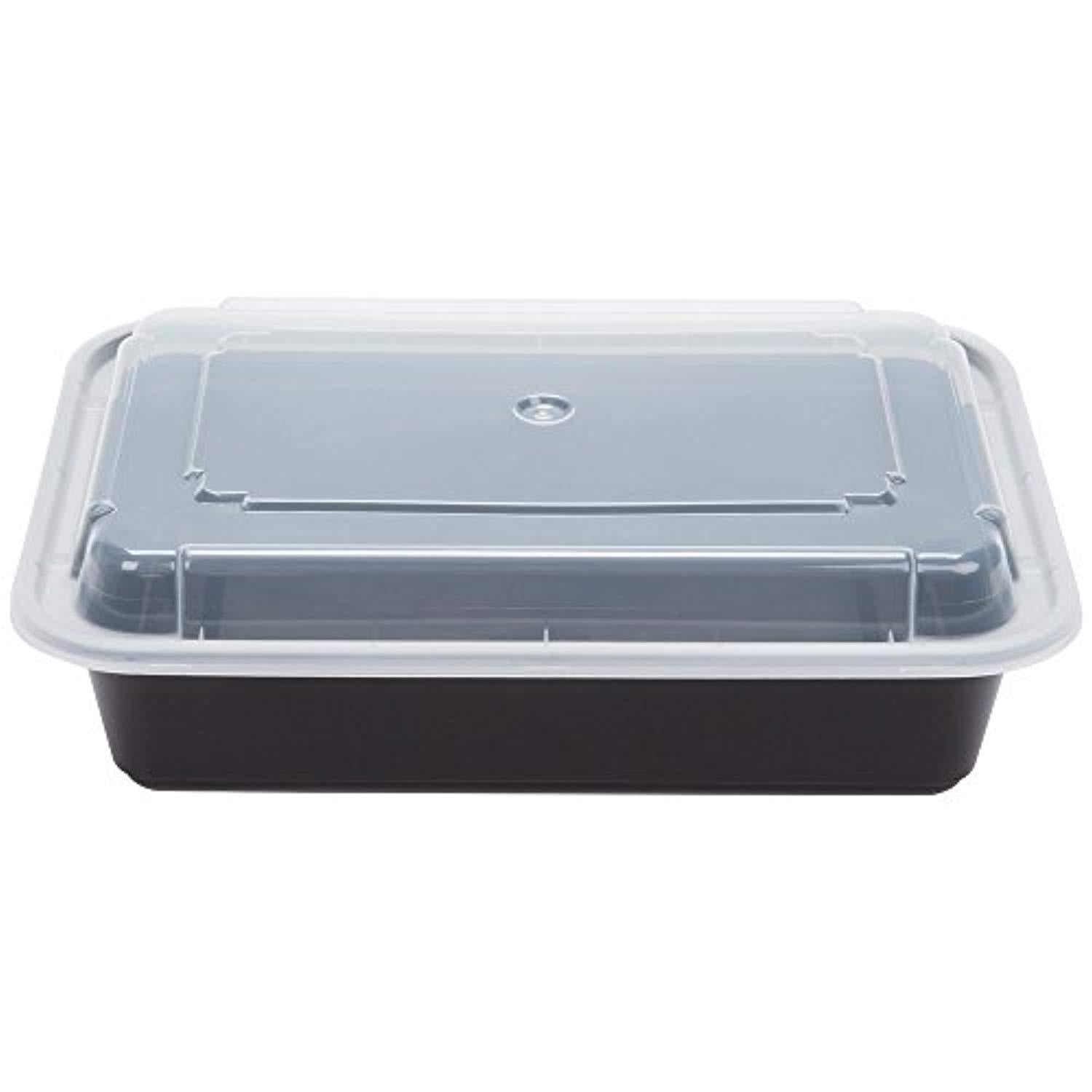 Meal Prep Containers with Lids - 1 Compartment Food Storage Bento Lunch Boxes [15-Pack] - Stackable, Reusable, Microwavable, Dishwasher & Freezer Safe. Rectangle (Black) [38 oz.]