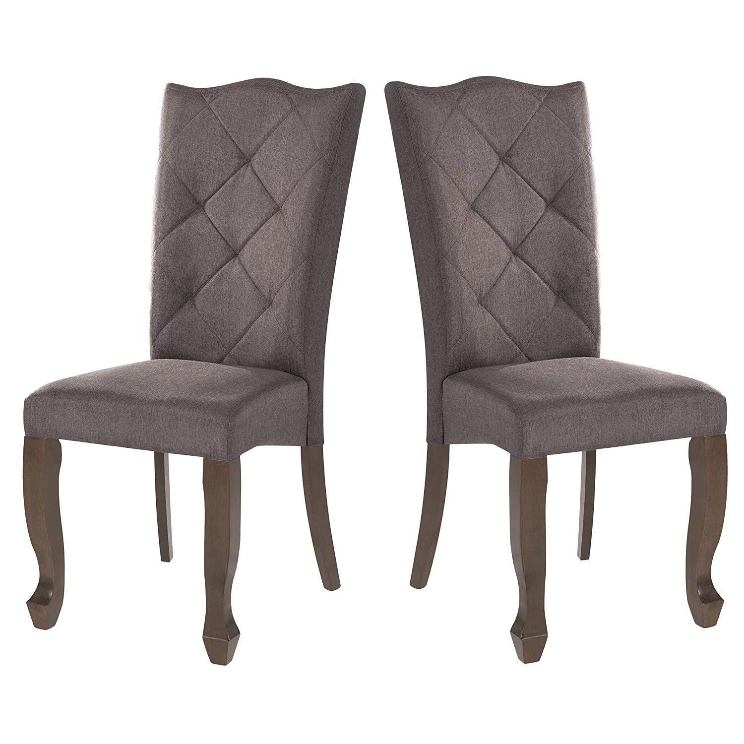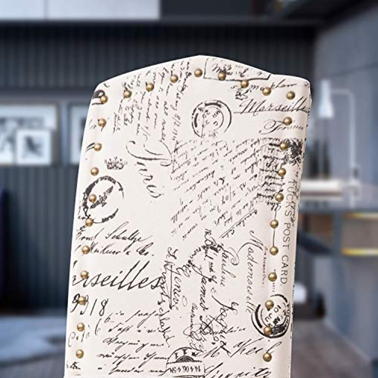 Merax Script Fabric Accent Chair Dining Room Chair with Solid Wood Legs, Beige,Set of 2