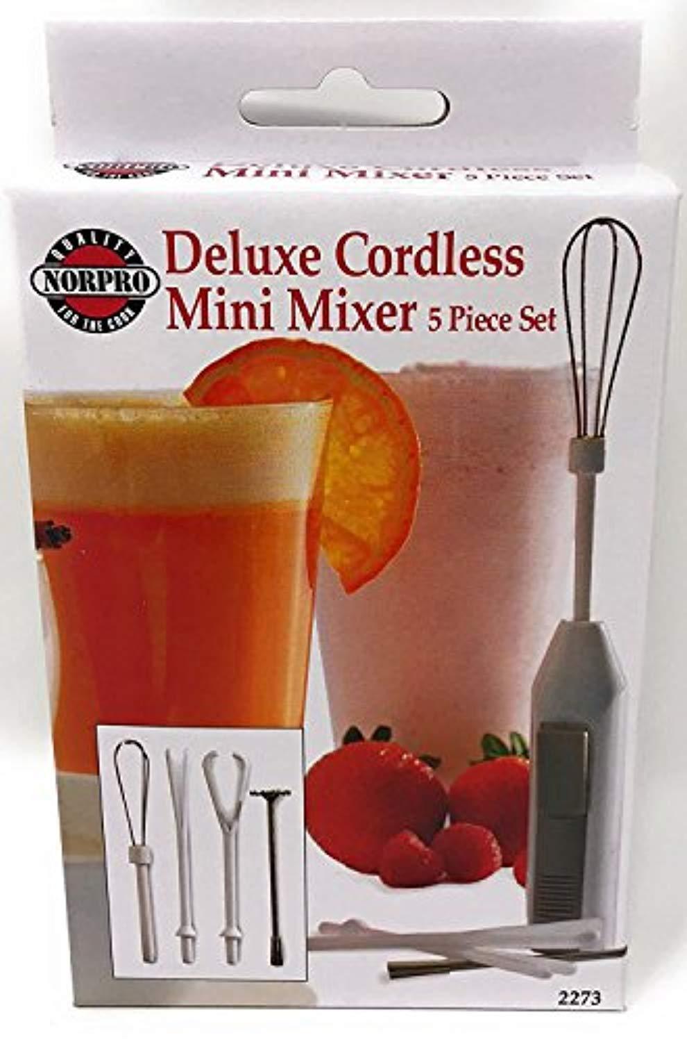 NorPro Mini Hand Mixer Set 5 Piece Electric Milk Portable Cordless Whipper Mixer Blender Frother, Battery Opperated + 10" High Temperature Silicone Spatula