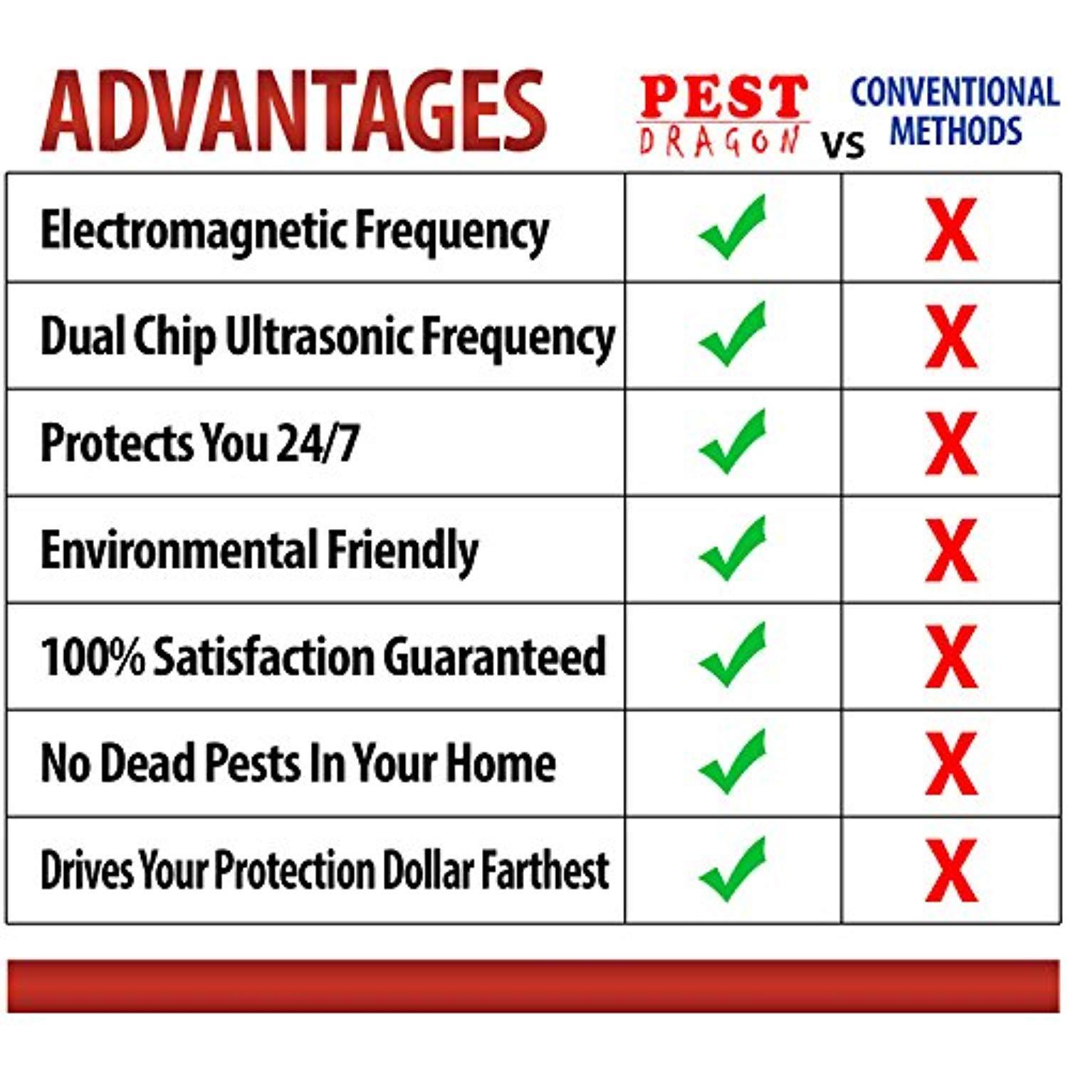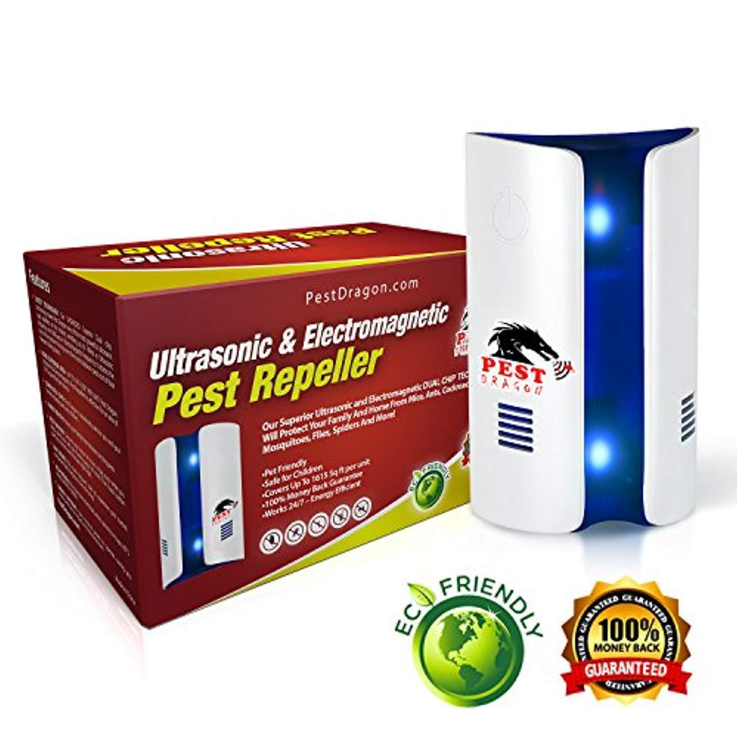 ELECTROMAGNETIC AND DUAL ULTRASONIC PEST REPELLER - Latest 2018 model with Ultrasonic Frequency up to 74KHz and Electromagnetic Frequency up to 180Gauss SAFEST AND MOST ADVANCED electric pest repeller with huge coverage area of up to 1615 sq ft per unit. Pet and baby safe. EASY INSTALLATION - Just plug into a wall socket 30cm above the ground and relax. Our Triple Power, Dual Chip Pest repeller will begin its magic. SAVE ENERGY AND MONEY - Cutting Edge. Revolutionary. Powerful and All-Encompassing Pest Control Solution saves you thousands of dollars every year on expensive pest control companies, while saving you time and energy. Typical results can take 2-3 weeks depending on the amount of infestation. 100% RISK FREE PURCHASE - If for any reason you aren't happy, simply contact us without hesitation and we will replace or refund the product for you. 100% risk free! No delays, no waits. Our focus is your complete satisfaction! Click 'Add to Cart' and order now while supplies last.