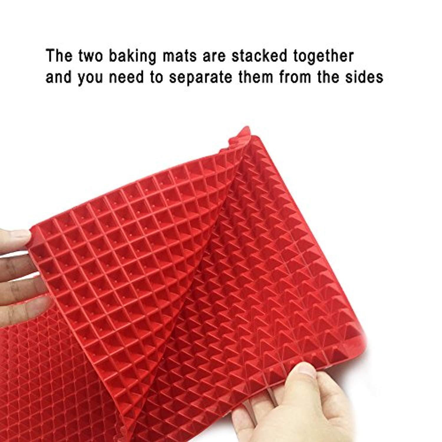 Silicone Baking Mat, 2 Pcs Holoko Non-stick Cooking Mats, Oil Drain and Pyramid Design for Turkey,Pizza and Cookie Sheet - 16" x 11.5"