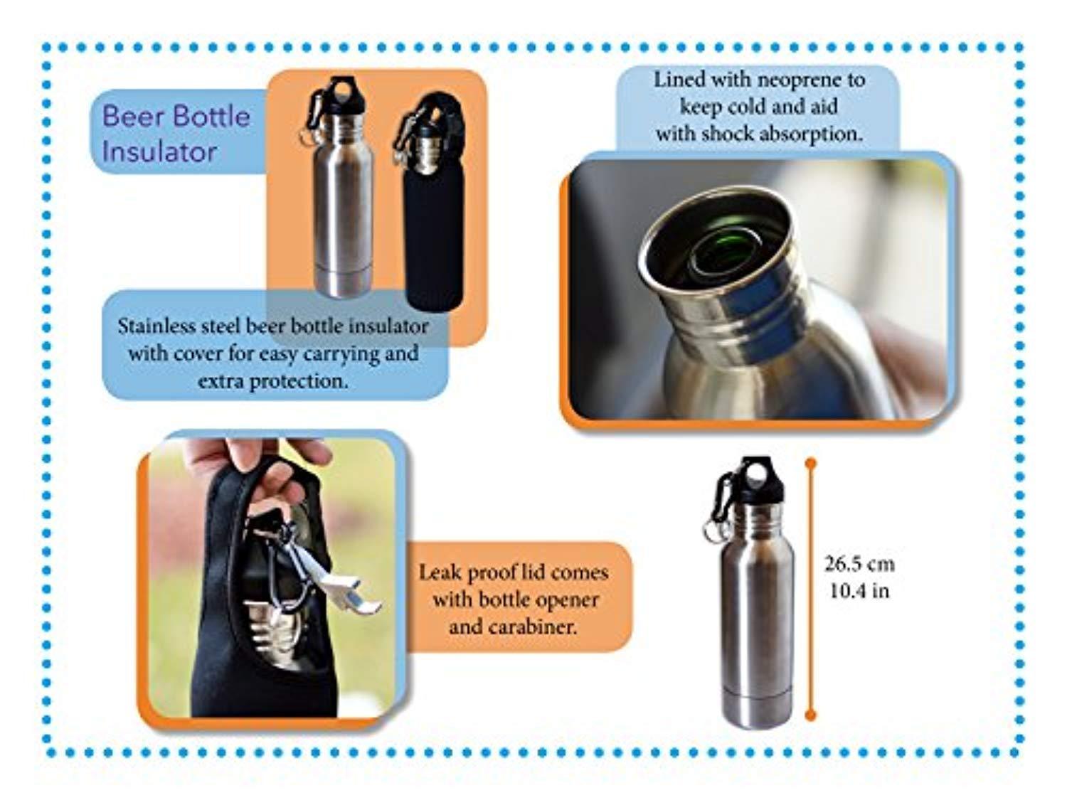- A FULL BUNDLE – we've bundled our for your convenience: insulated carrying bag, which works as an isolation and protective layer, keeping your drinks cold for longer. Ergonomic handle ensures full portability, free bottle opener attached to the top cap, and keychain carabiner to attach on any backpack, jeans or equipment, all this makes this bundle a perfect product for everyone.