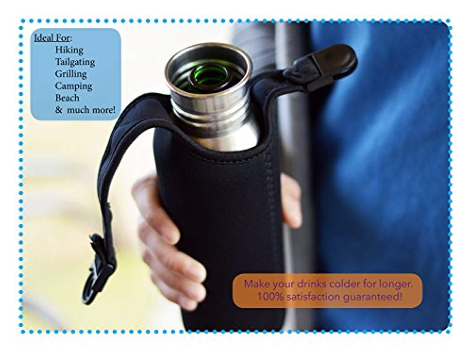 - INSULATED! KEEPS YOUR BEVERAGE ICE COLD – Keeps your beverage ice cold wherever you are, whatever you do, and in whatever weather conditions. This bottle is made of 18/8 BPA free stainless steel, lined with neoprene to keep your drinks ice cold for longer. Top cap has an inner seal locking in with your opened bottled beverage to prevent and spillage and steel construction of our functions by concealing your bottle.