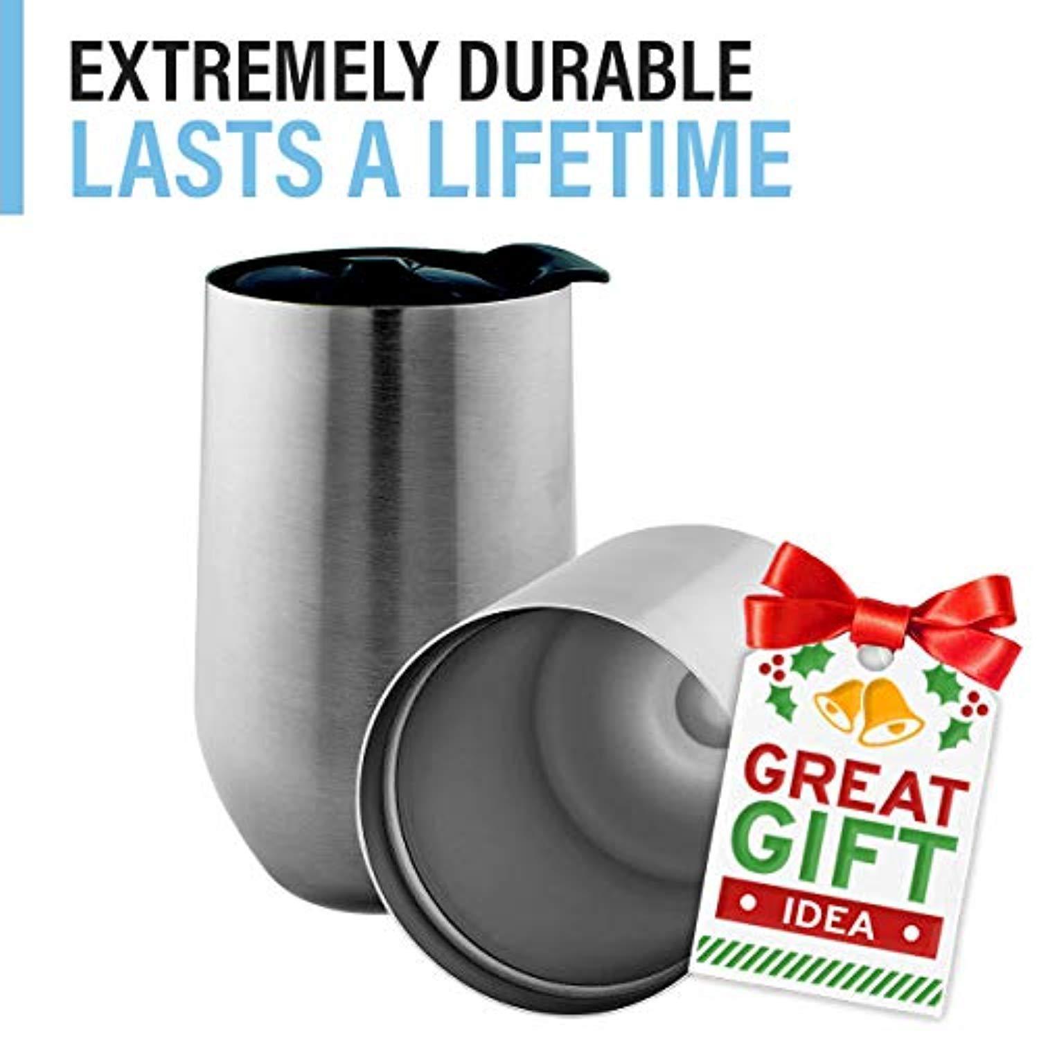- PERFECT CHRISTMAS WINE GIFT: These Funny Wine Glasses will serve as the ideal present for anybody who likes wine! They are the same size as a regular glass of wine, only these are Stemless Wine Glasses made of High Grade 304 Stainless Steel.