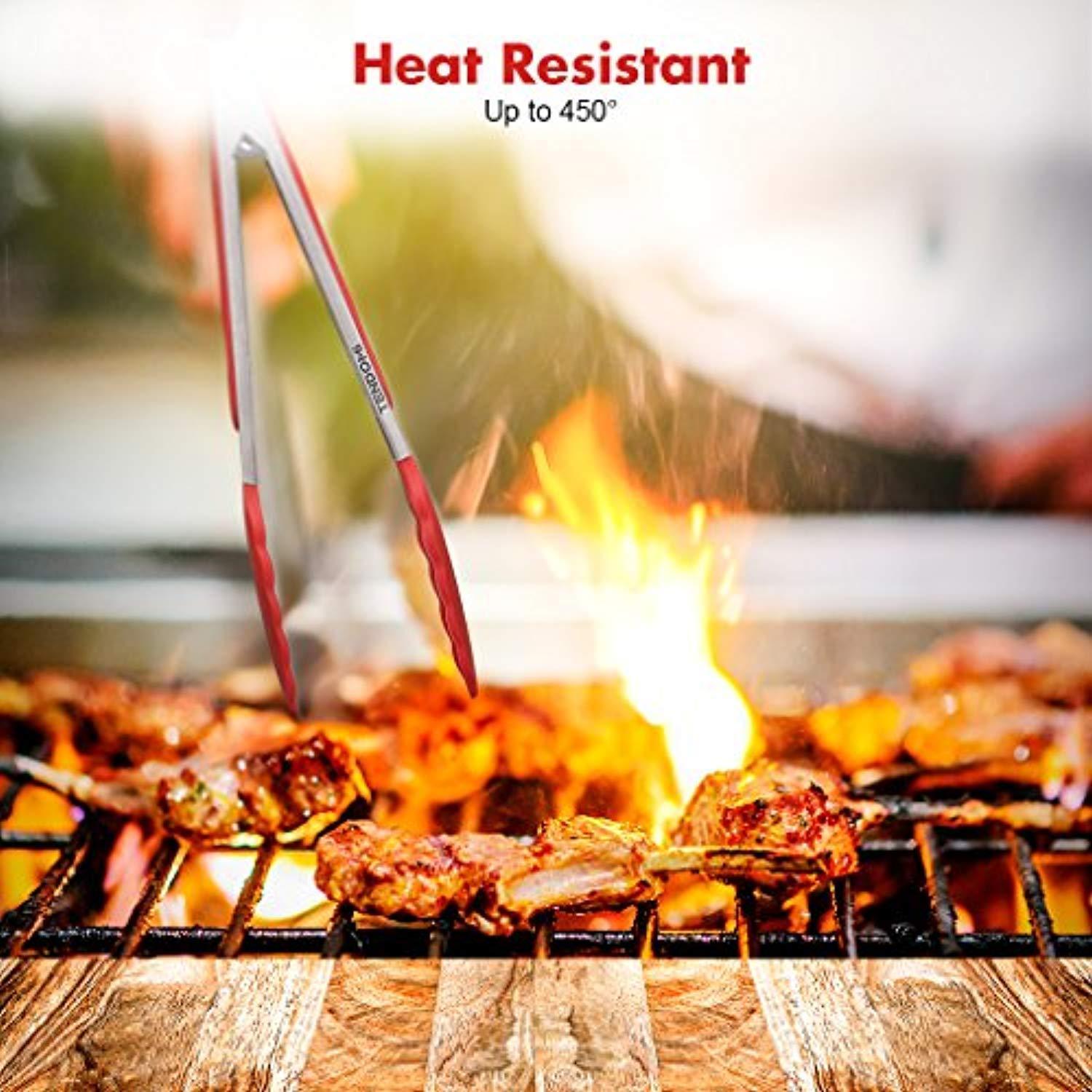 - ♥ EASY TO USE,HEAT RESISTANT & DISHWASHER SAFE - The silicone is heat-resistant up to 450℉,perfect for turning large cuts of meat while barbecuing! Easy and safe cleaning in the dishwasher; The odorless, BPA-free and FDA- approved silicone tips enable you to enjoy food without worrying about the health effects;