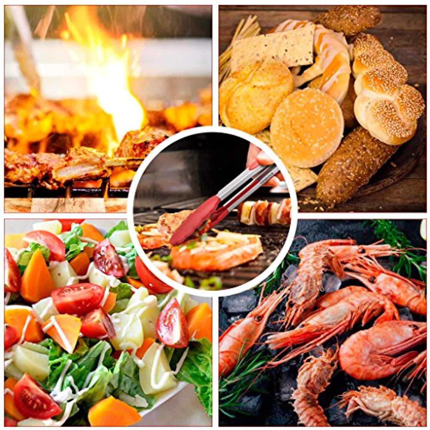 - ♥ GOOD GRIP AND CONTROL FOOD SILICONE KITCHEN TONGS - premium 304 stainless steel construction and silicone clamp finished.The barbecue tongs can withstand years of use; Non-slip surface and wave design offer you the best control on food,corrosion resistant.