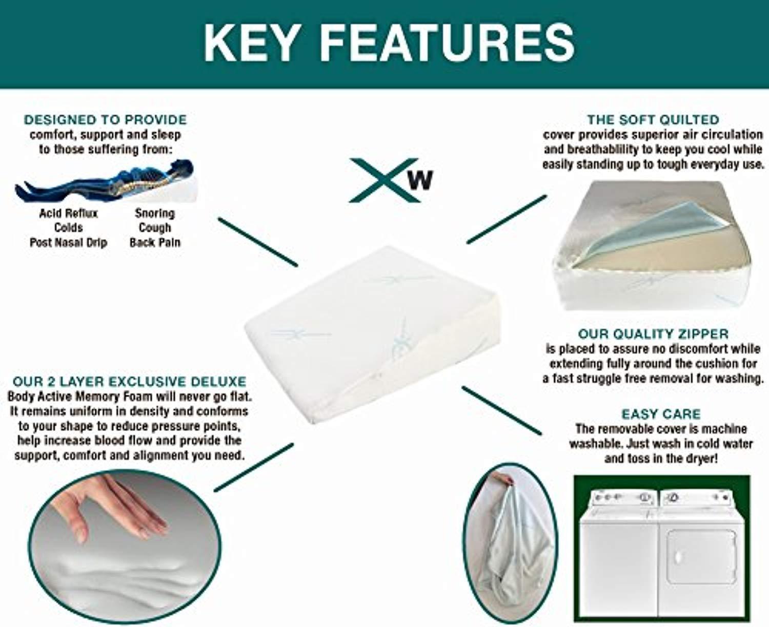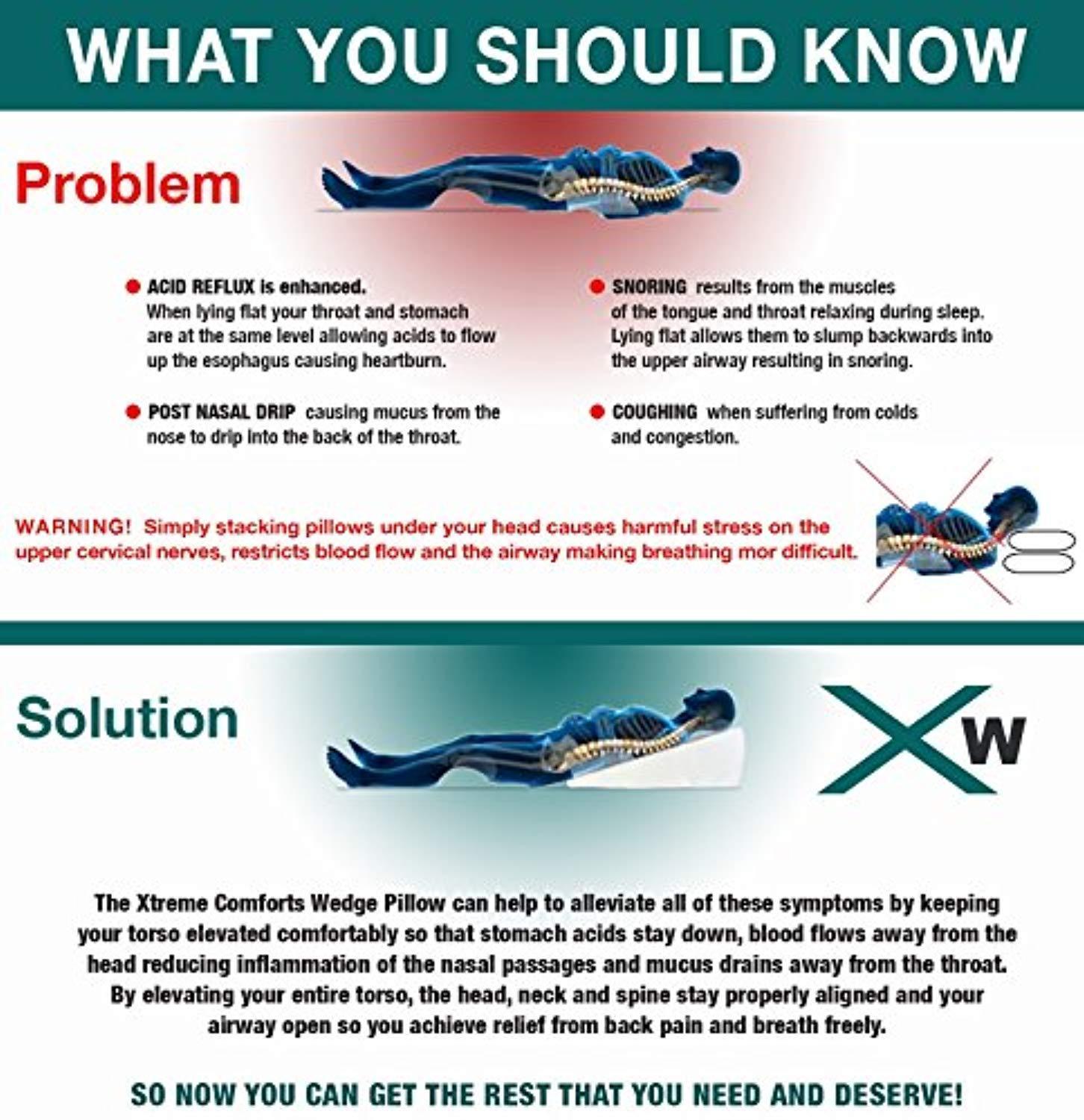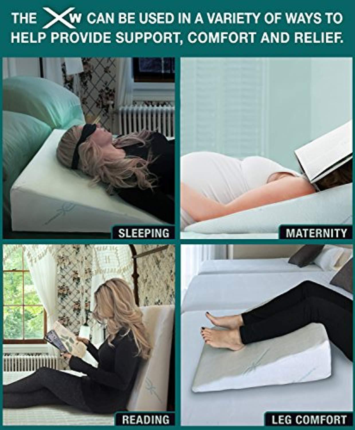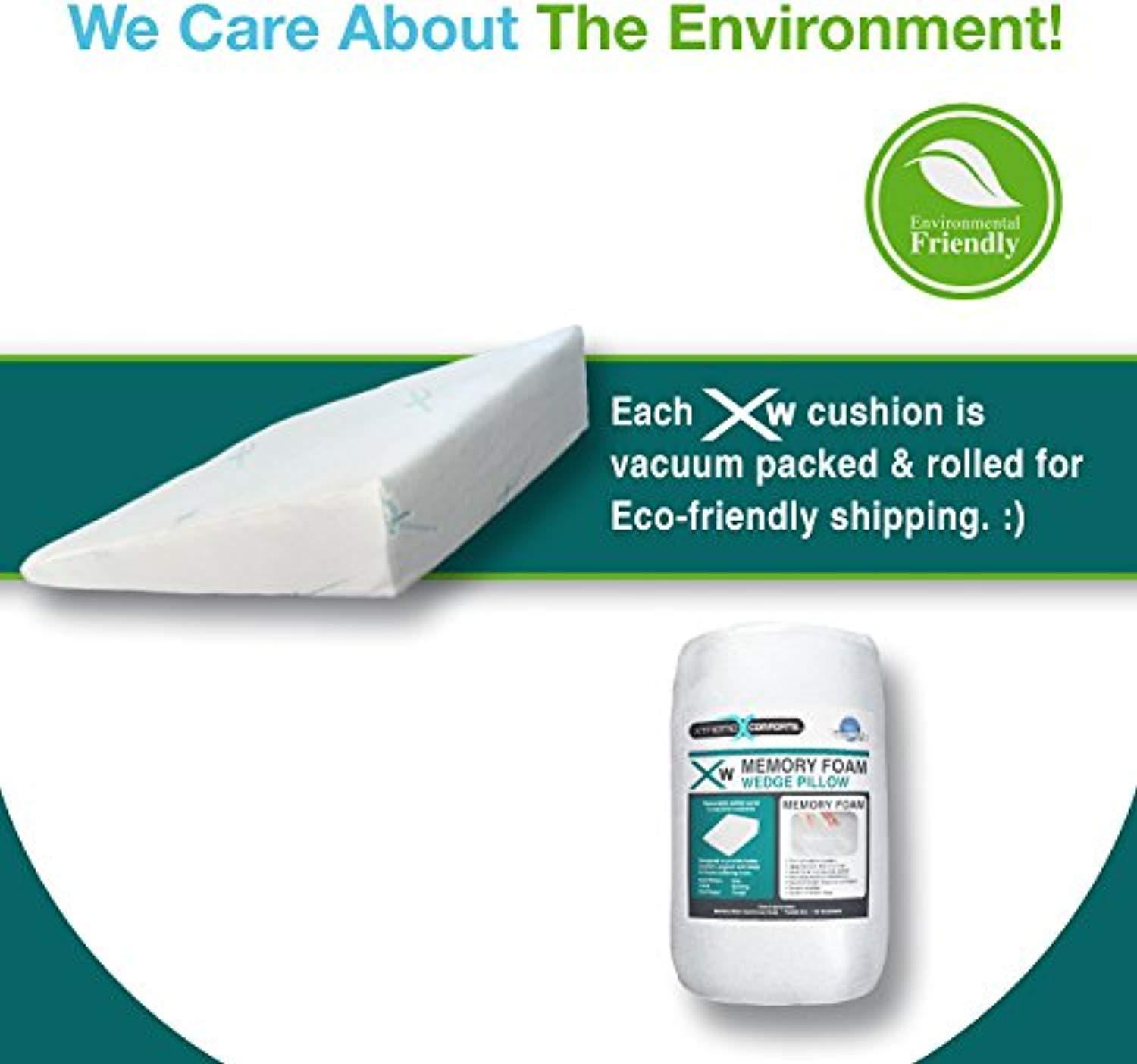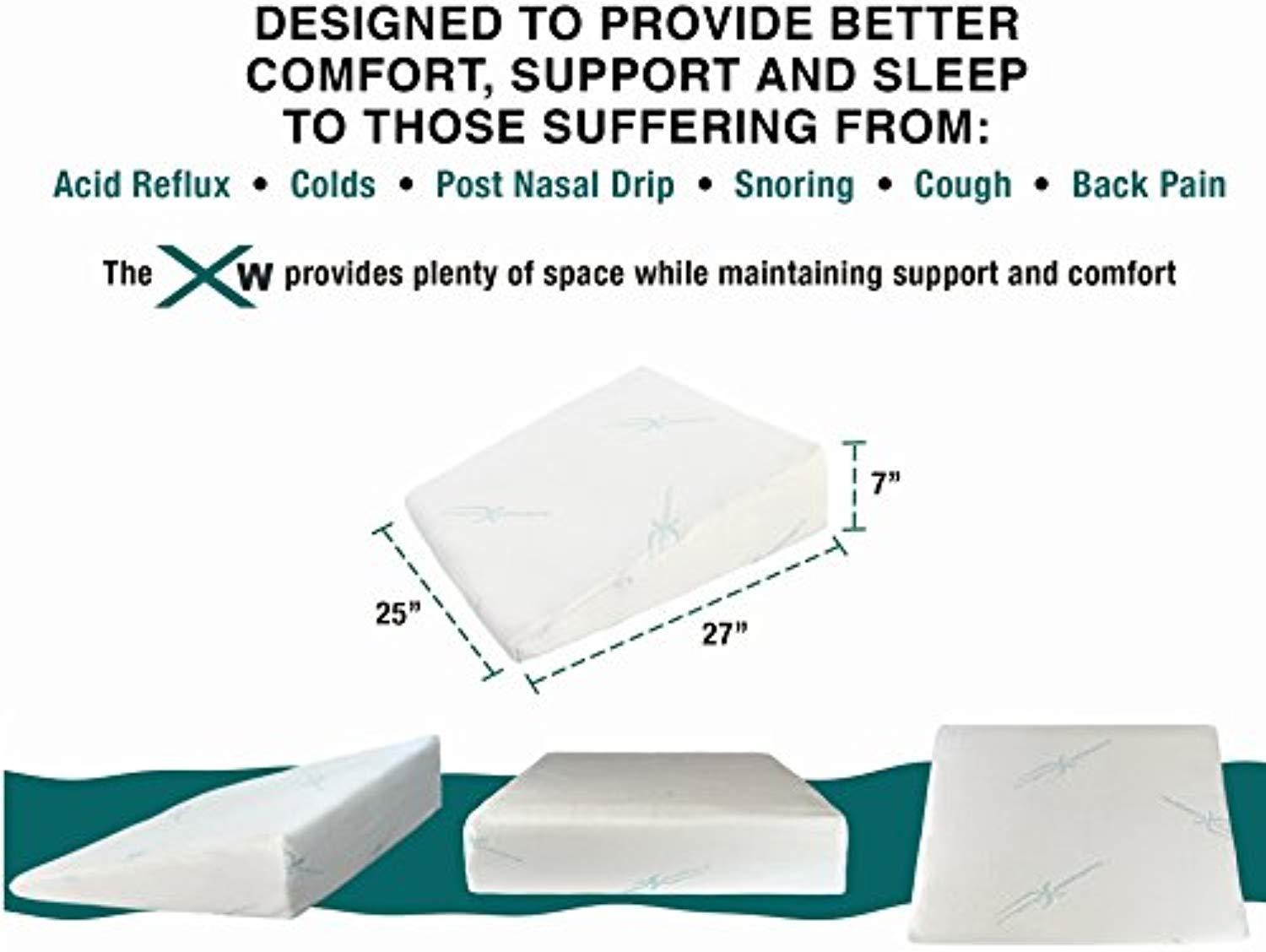 Xtreme Comforts 7" Memory Foam Bed Wedge Pillow, Hypoallergenic Breathable, Washable Bamboo Cover, Elevated Support Cushion, Acid Reflux, Lower Back Pain, Heartburn, Snoring, Allergies, Post Nasal