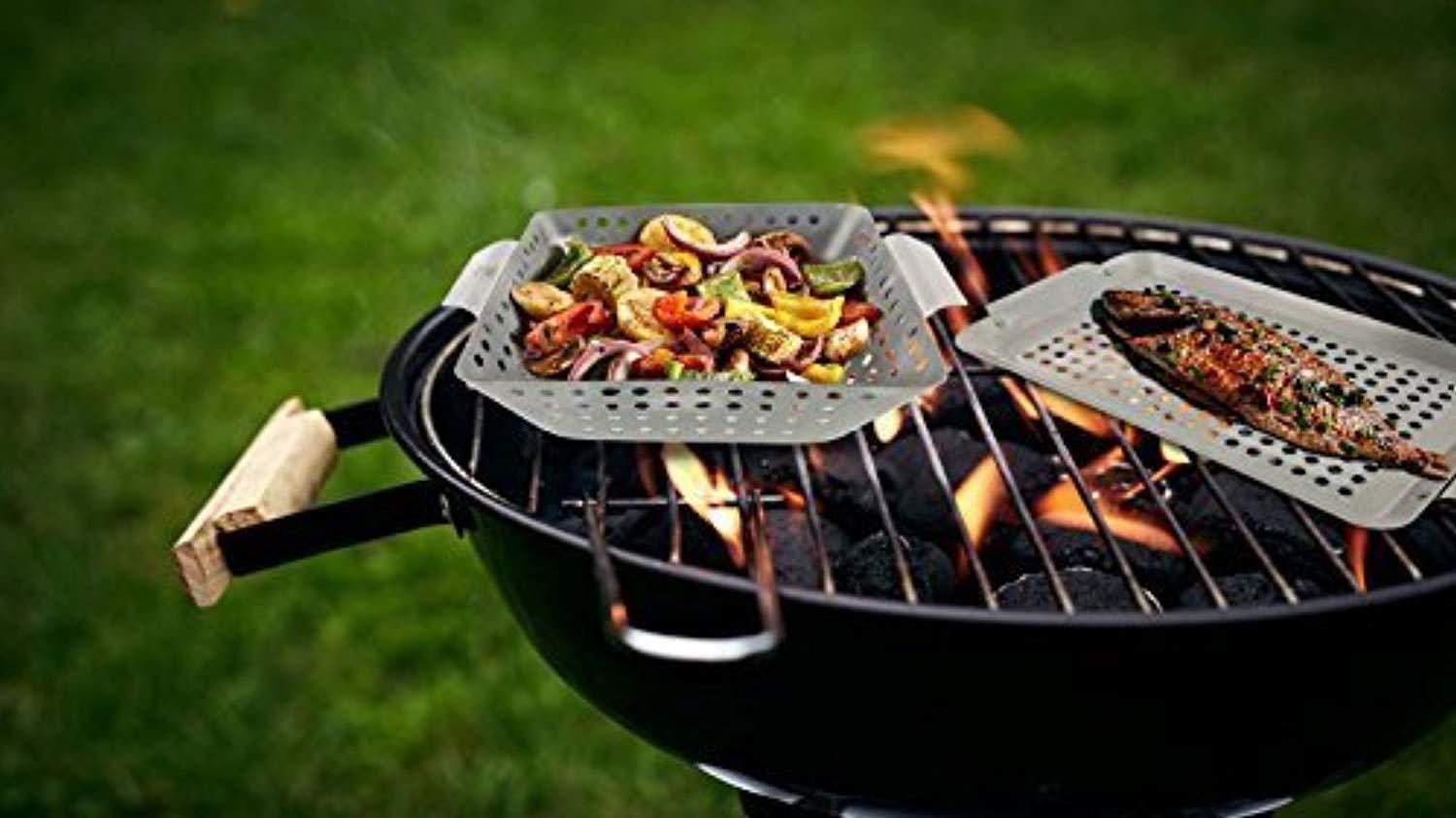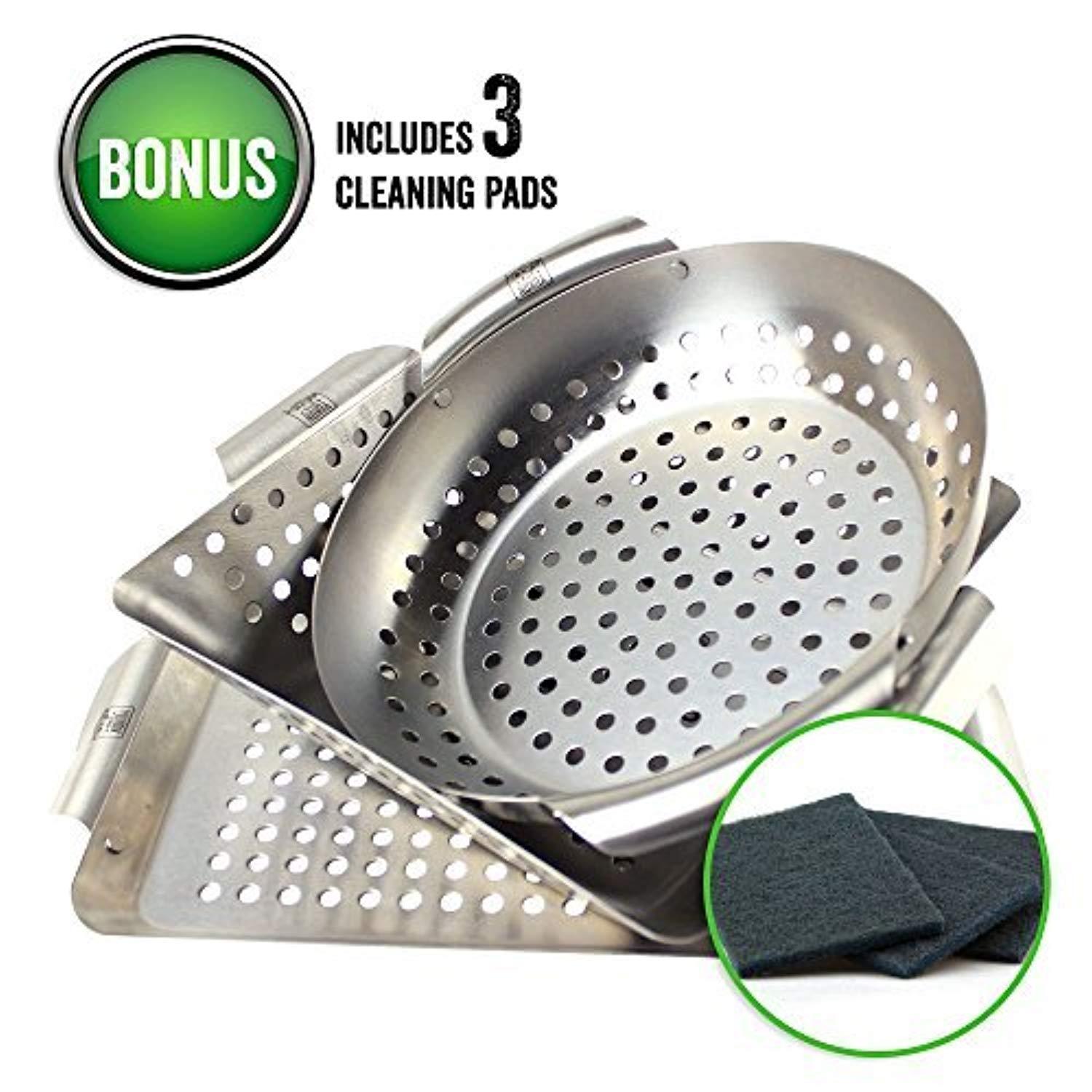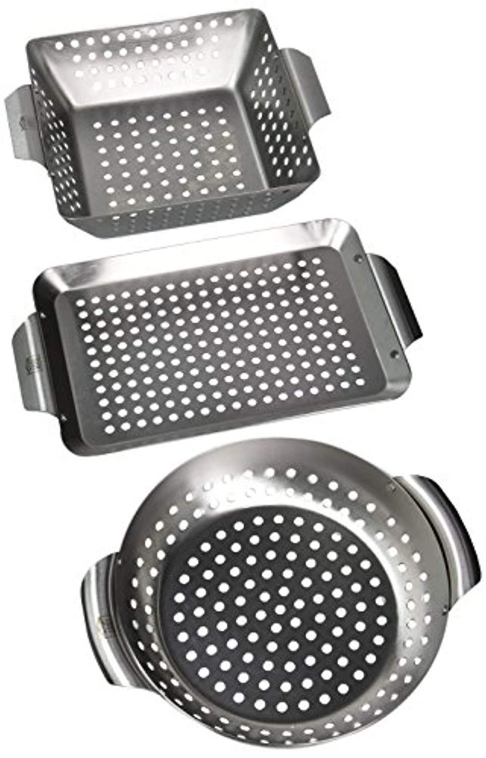 Yukon Glory 3-Piece Mini BBQ Grill Baskets Accessory Set with Cleaning Pads,for Grilling Vegetables, Chicken Pieces etc