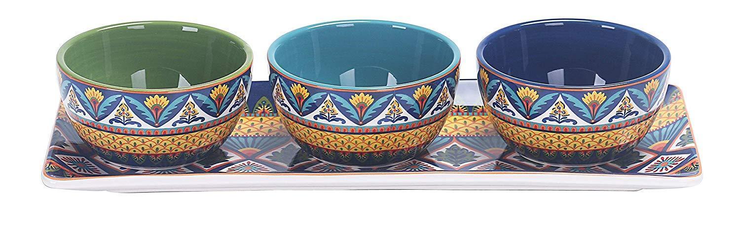 Bico Red Spring Bird Ceramic Dipping Bowl Set (13oz bowls with 14 inch platter), for Sauce, Nachos, Snacks, Microwave & Dishwasher Safe, House Warming Birthday Anniversary Gift