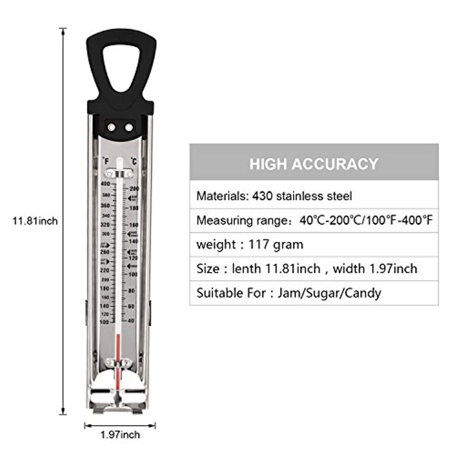 【Safe and Non-toxic Materials】:The candy thermometer is made of the non-toxic aviation kerosene rod core,instead of traditional mercury,and it is a very safe rust-proof stainless steel solid construction,you can buy it without any hesitation.