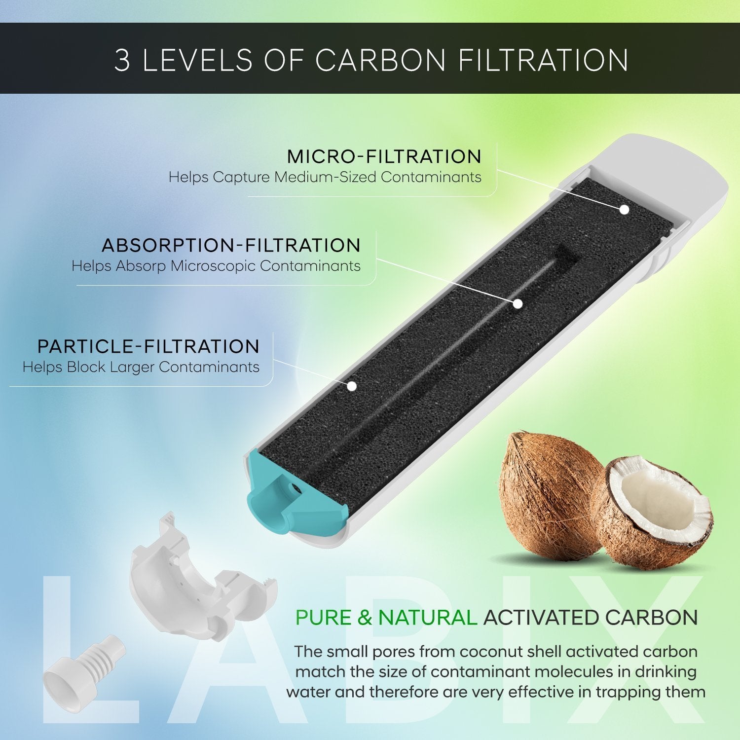 Reduces chlorine, heavy metals, pesticides, and pharmaceuticals
