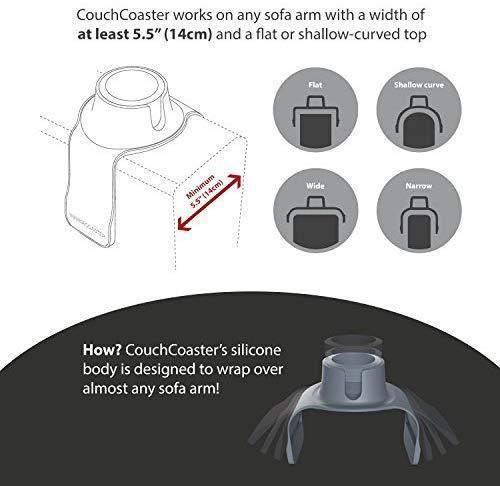 ONE-SIZE-FITS-ALL DRINKS: CouchCoaster - The ultimate drink holder for your sofa, is a one-size-fits-all drink coaster to securely hold all your favourite drinks - hot or cold - on your sofa, couch, armchair or recliner (fabric or leather).