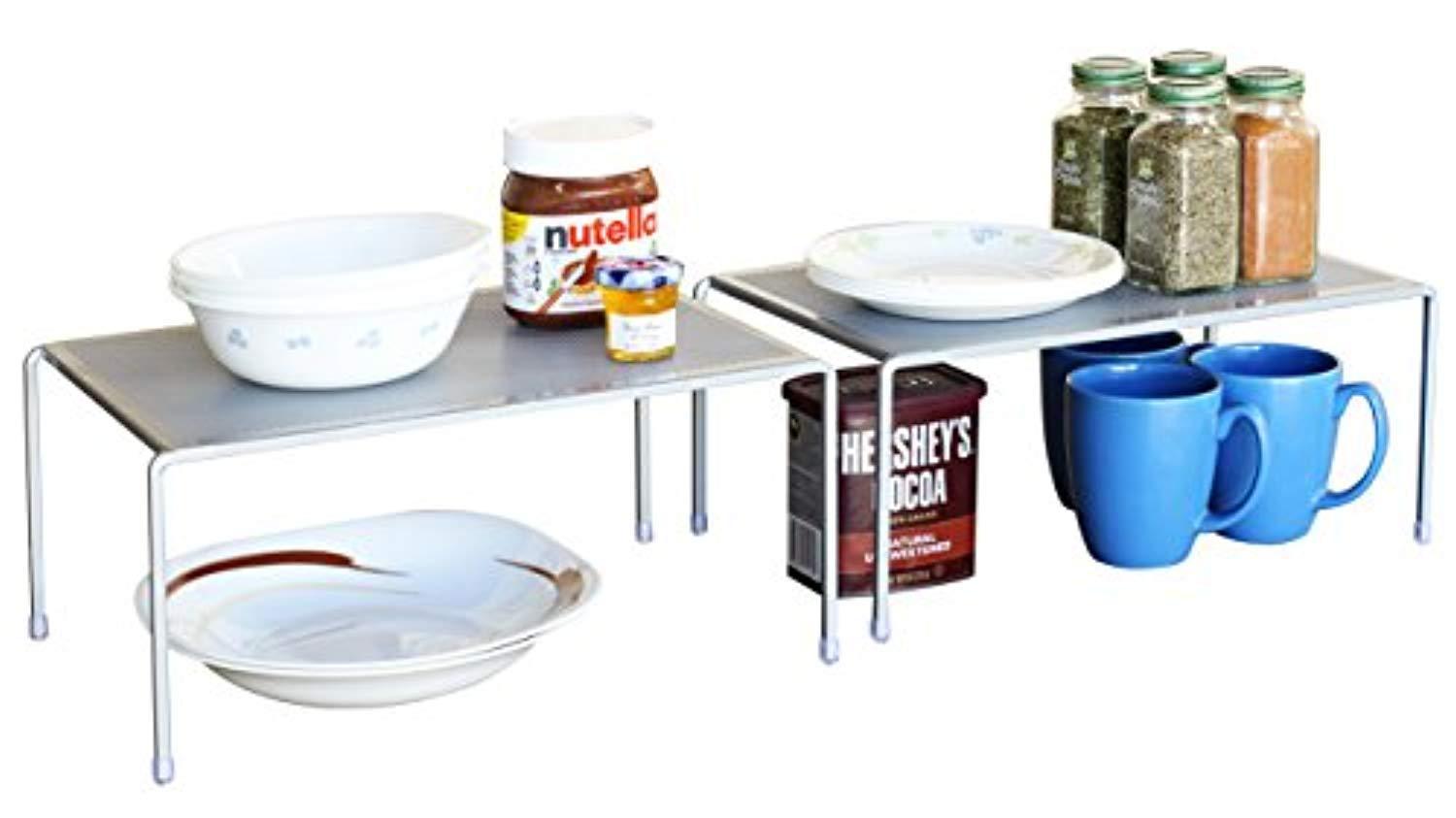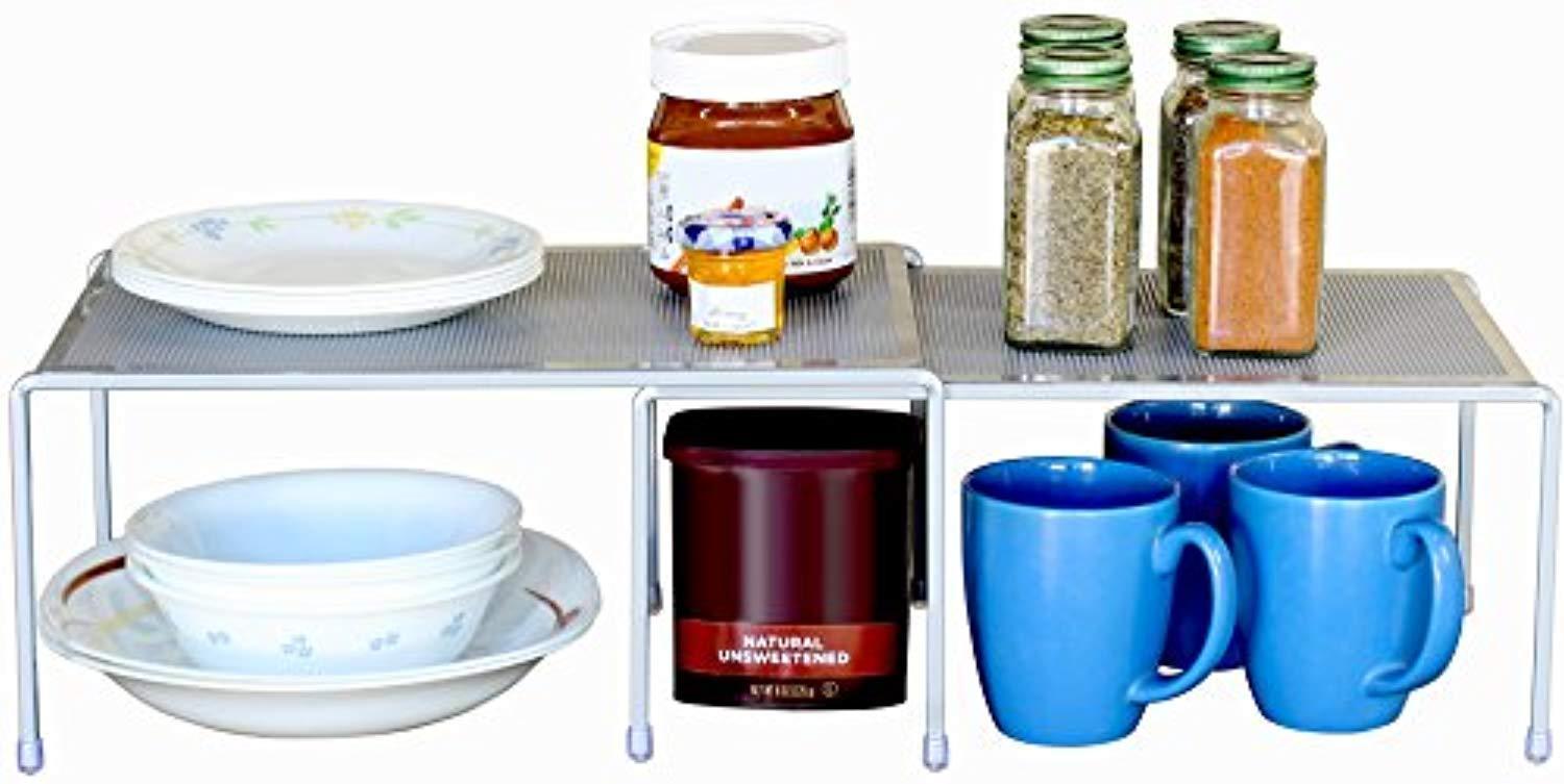 Elegant Perforated Design, and Stackable design w/ 2 tier shelf Expandable from 13.75 to 26 inches