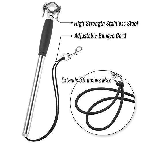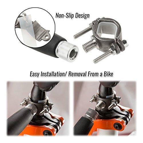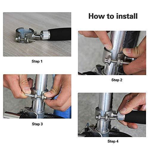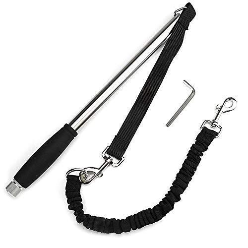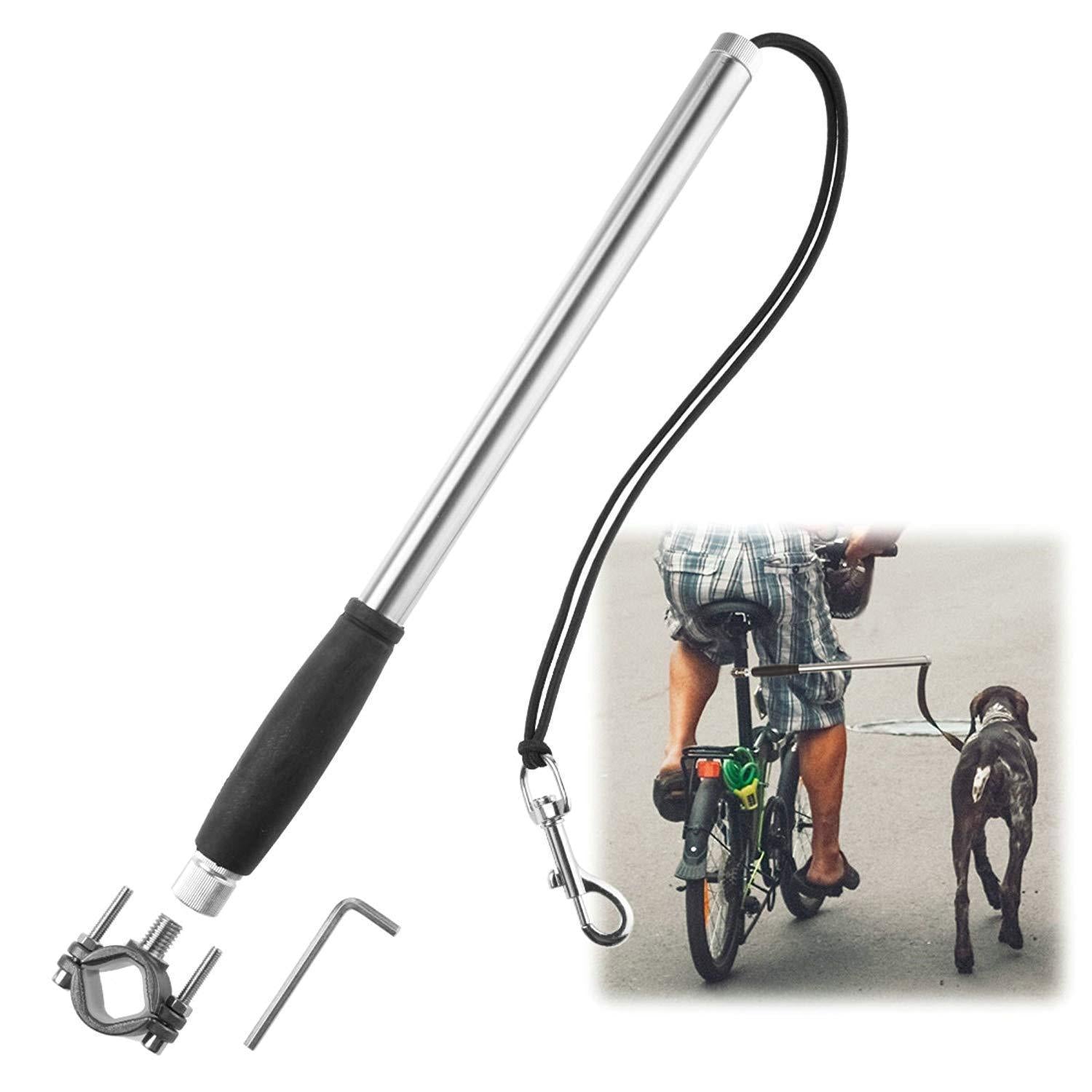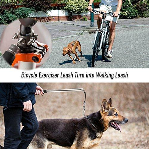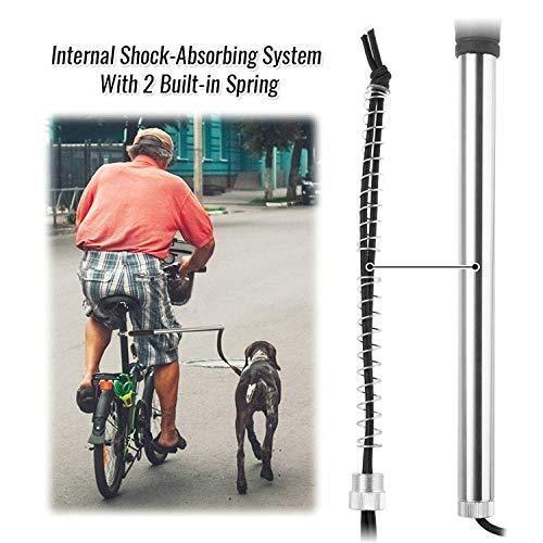 Built from high-strength stainless steel, adjustable bungee cord extends 30 inches max. Easy installation/removal. Can be easily disconnected from a bike by screwing and unscrewing in seconds. Compatible with any kind of bike. Hassle free detach system allows you to unscrew the leash effortlessly, after initial installation, and serve as a walking leash. Patented design includes an internal shock-absorbing system allows you to maintain control while riding without the effects of your best friends sudden jerking movements. Dissatisfaction within 30 days can be 100% refunds. When you first use it, walk a distance to get your dog to adapt.