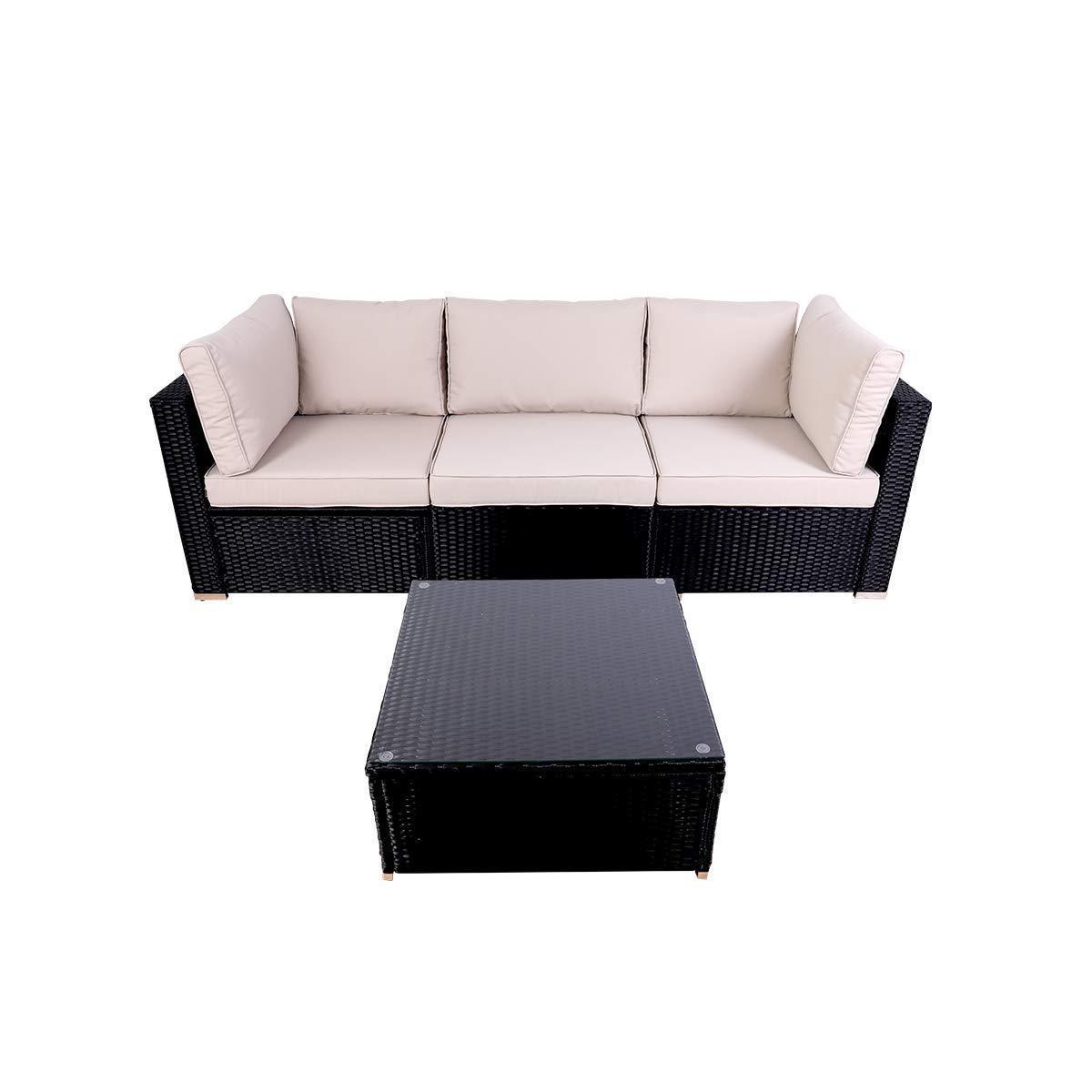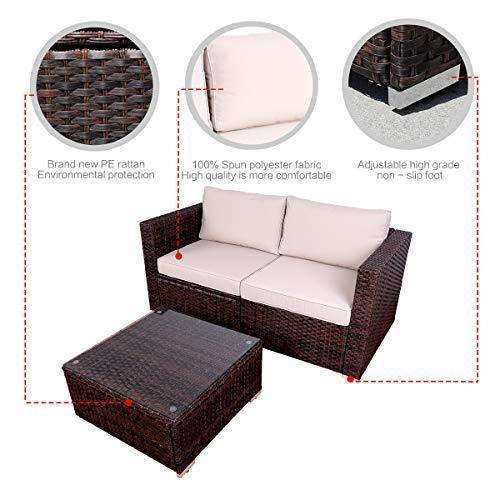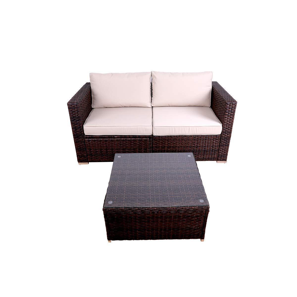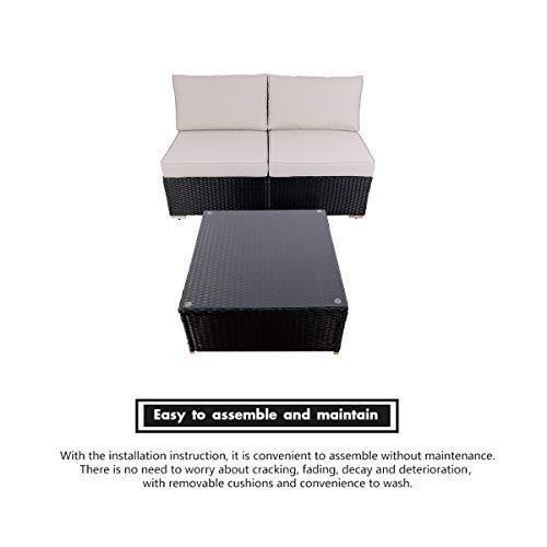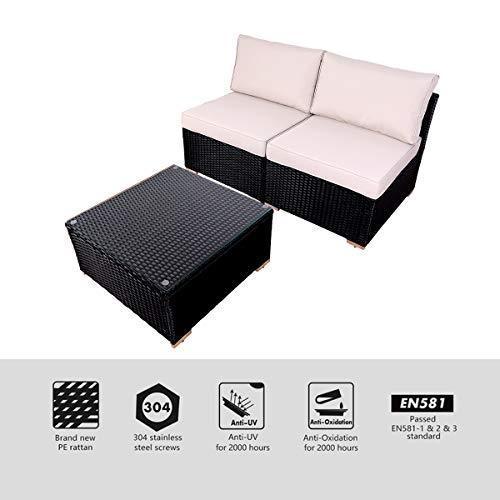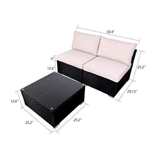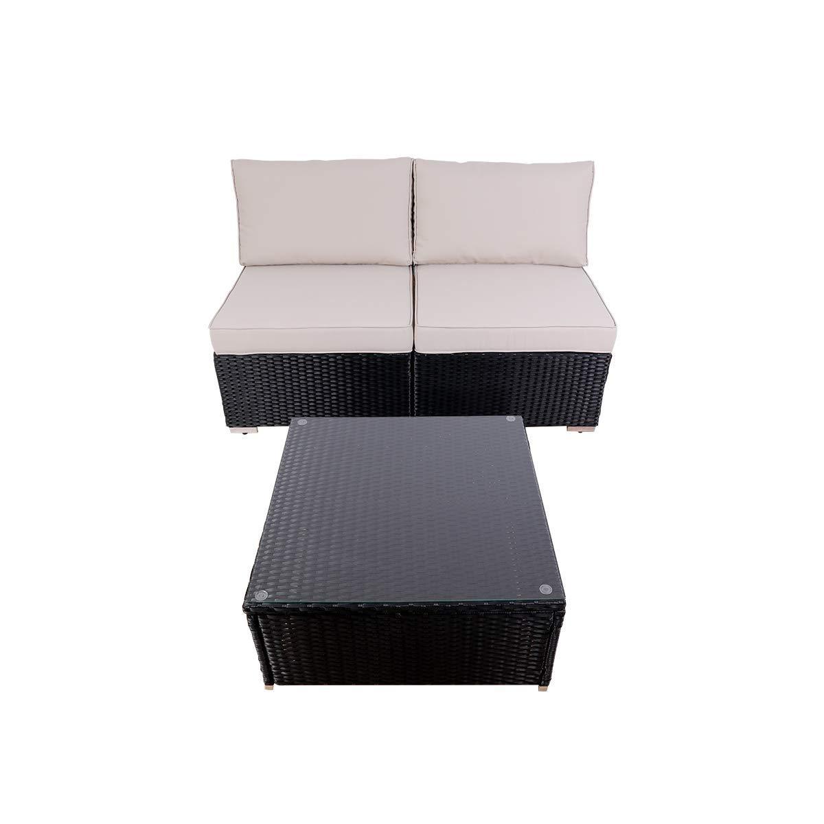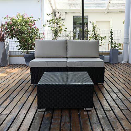DIMAR garden 3-Piece Outdoor Rattan Patio Furniture Sectional Sofa Wicker Furniture Conversation Set Lawn Garden Pool Courtyard Table Backyard Chair Weather Outdoor Patio Sofa(Black)
