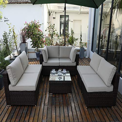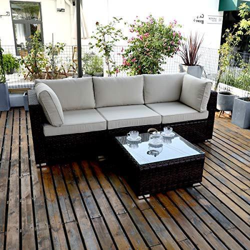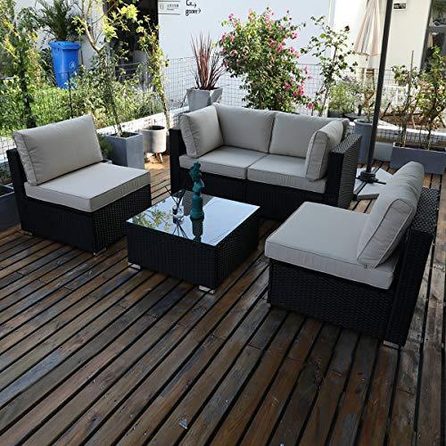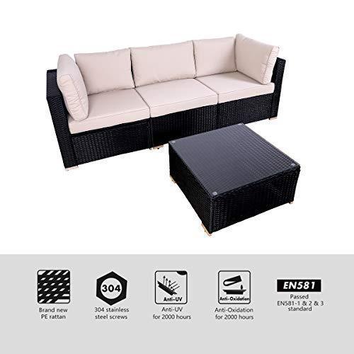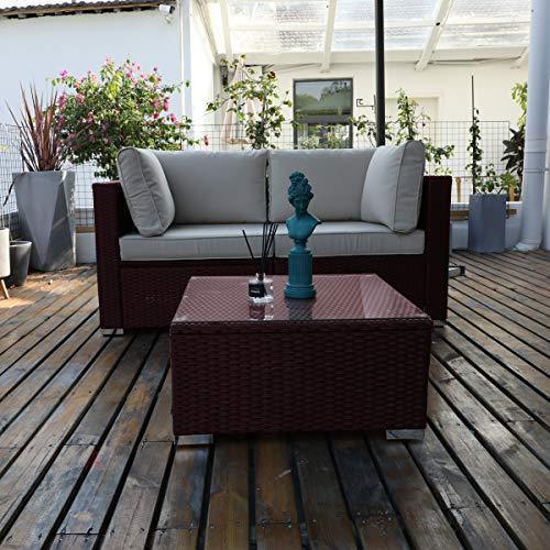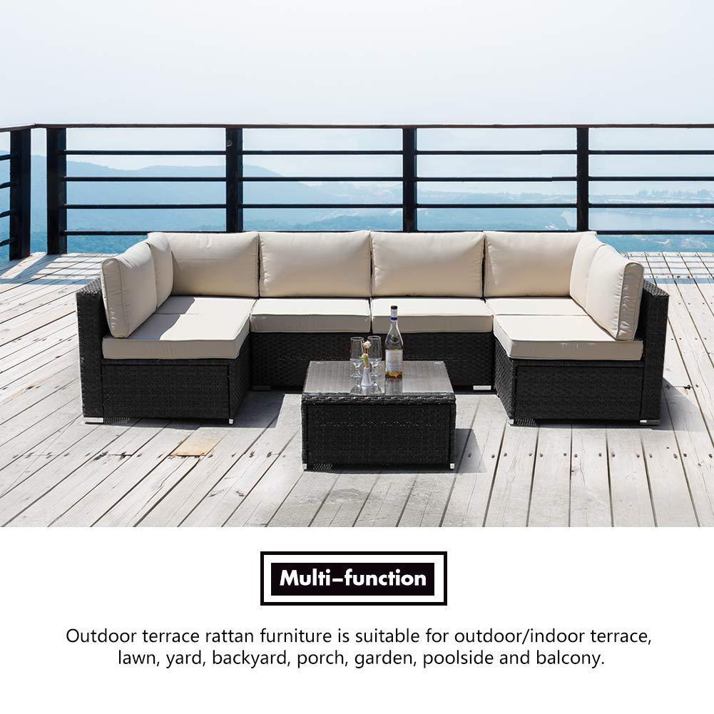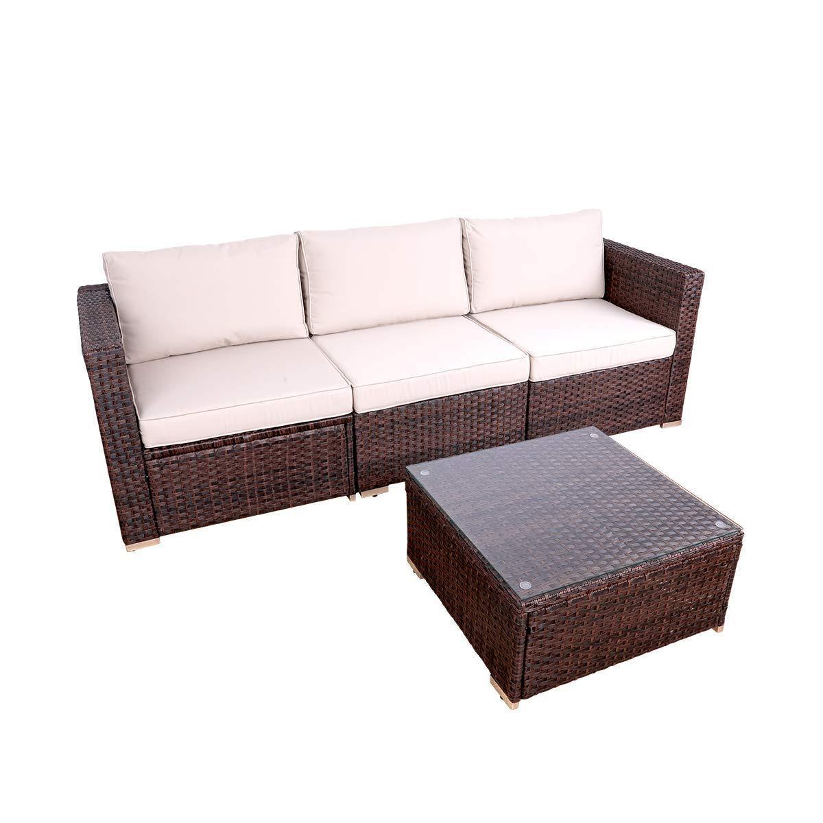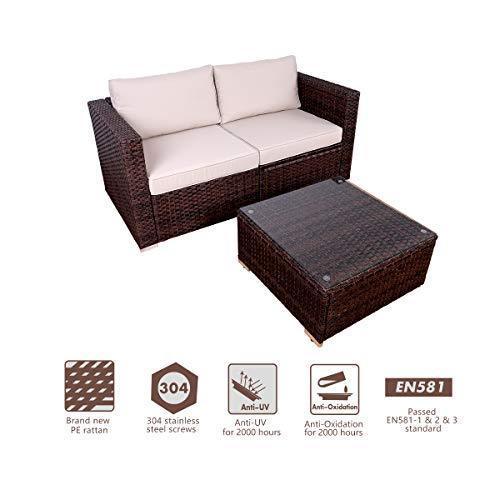 DIMAR garden 3-Piece Outdoor Rattan Patio Furniture Sectional Sofa Wicker Furniture Conversation Set Lawn Garden Pool Courtyard Table Backyard Chair Weather Outdoor Patio Sofa(Black)