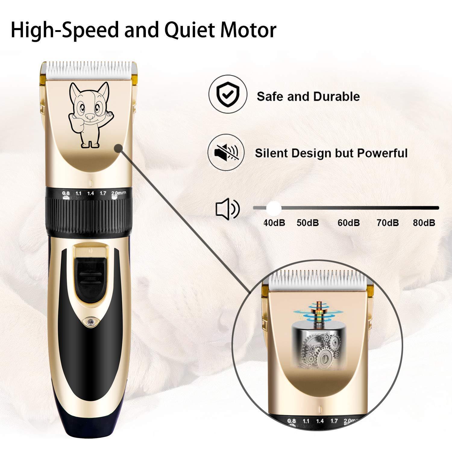 Dog Grooming Kit Clippers, Electric Quiet, Low Noise, Rechargeable, Cordless, Pet Hair Thick Coats Clippers Trimmers Set Suitable for Dogs, Cats, and Other Pets