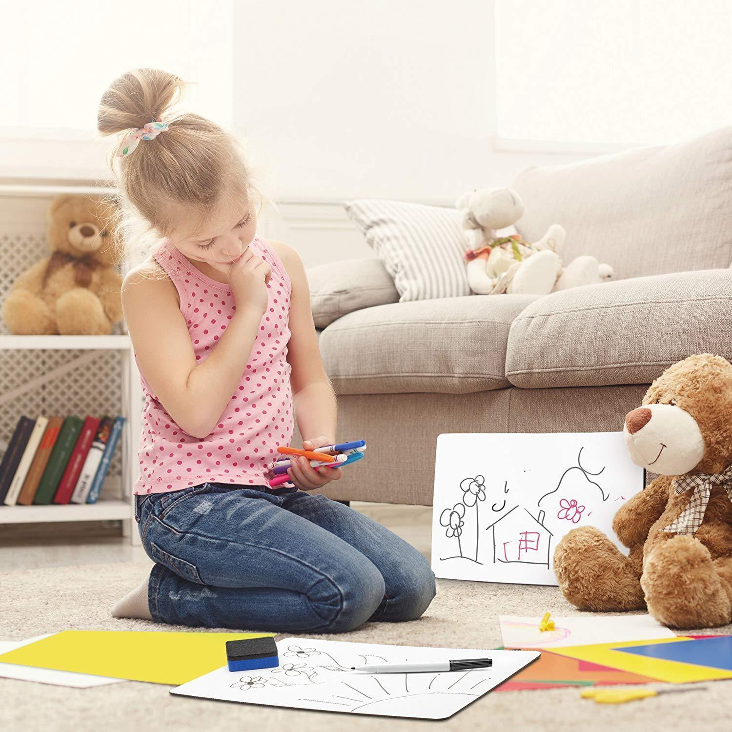 ✅DRY ERASE LAPBOARDS - PERFECT LAP-SIZE: At 8.25'' x 11.75'' the mini whiteboards are are large enough to draw diagrams while being small enough for young children to handle easily. The perfect dry erase board for kids at any age!