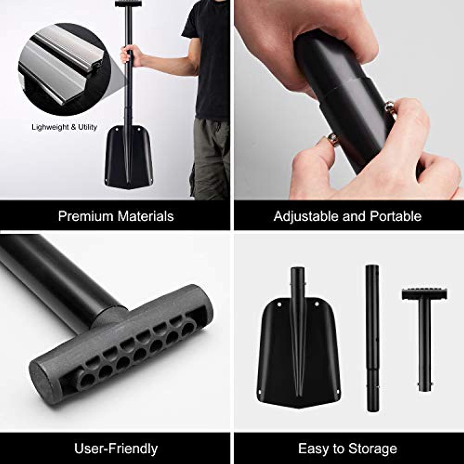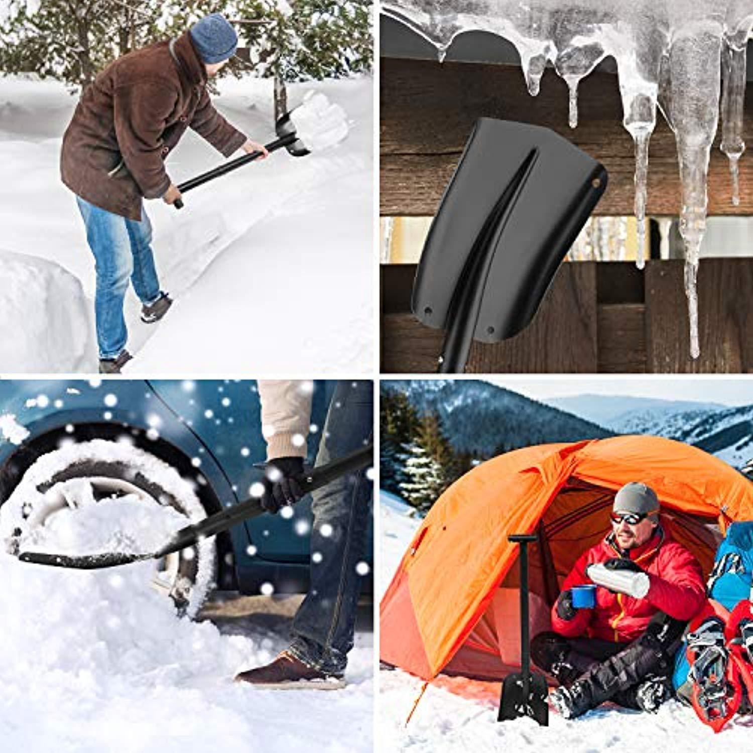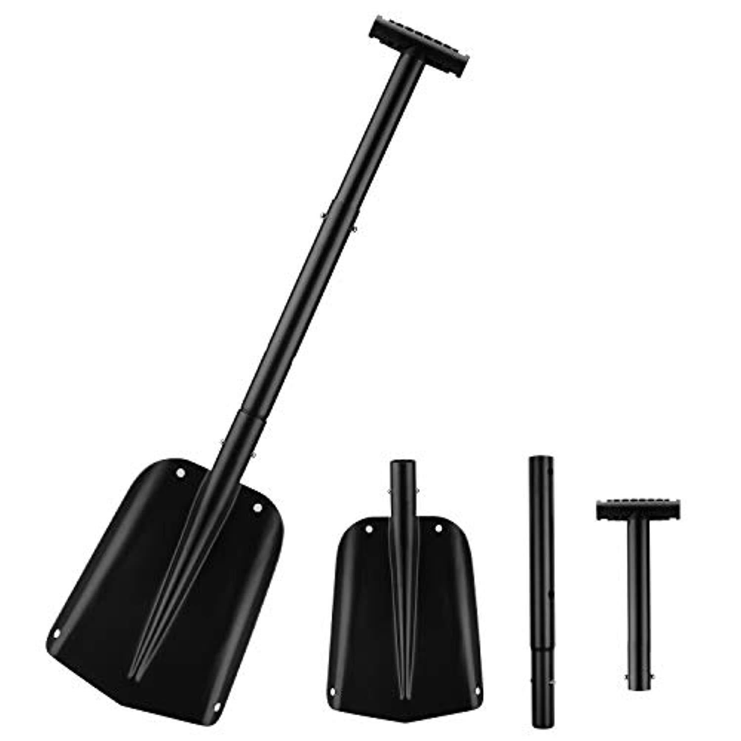 ENKEEO 25-31 Inch Aluminum Snow Shovel 3 Piece Collapsible Lightweight Spade with T-Grip Handle for Snow Shoveling Ice Removal Auto Vehicle Emergency Farm Patio Planting, Black
