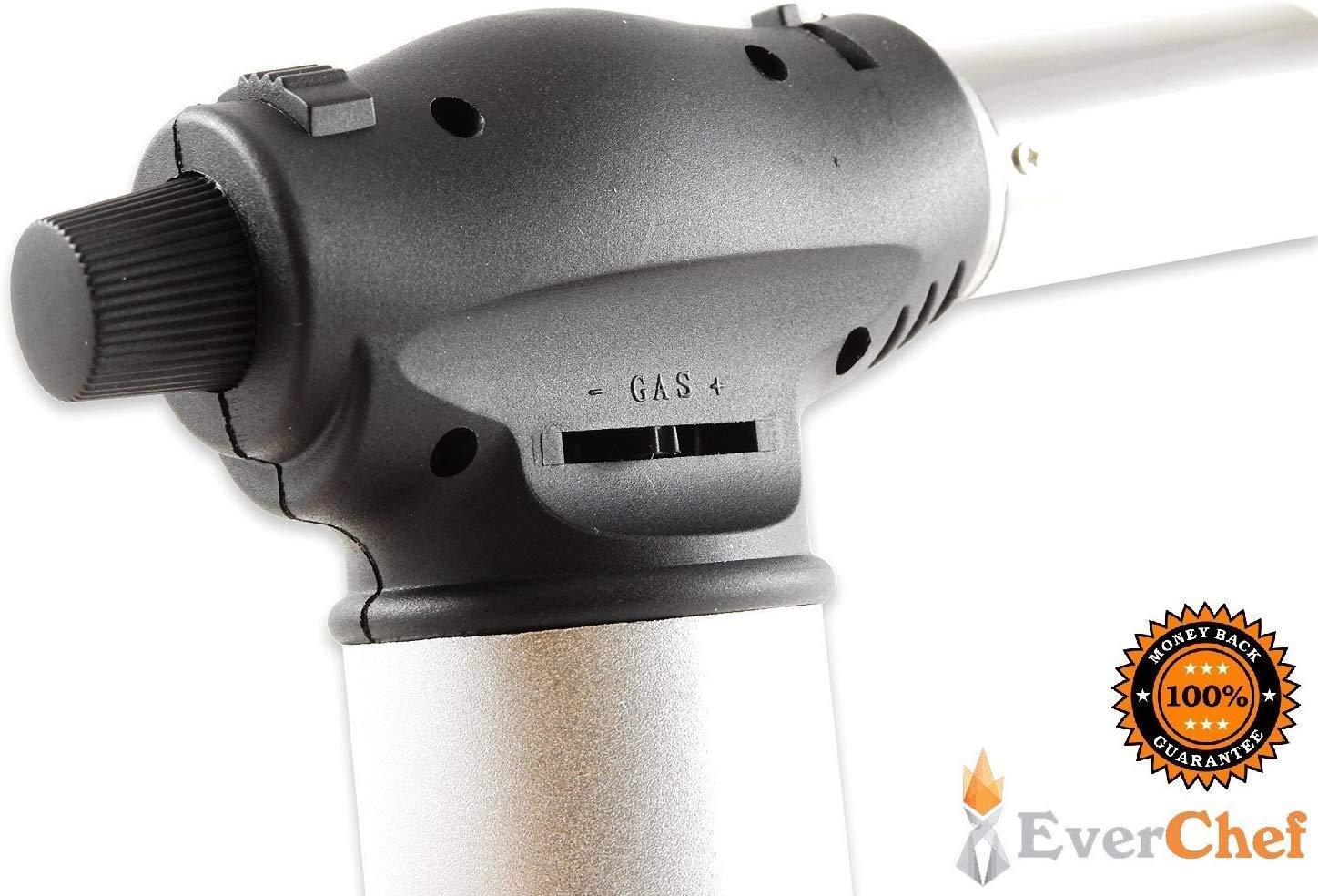 SAFE COOKING IS ALWAYS MORE ENJOYABLE: EverChef engineered several safety features beginning with the Ignition Lock system and a wide set base to help prevent tipping. Our torch includes an Extra Long Nozzle with an Anti-Flare design; meaning you can play with fire while making awe-inspiring dishes. With high quality materials and these easy-to-use mechanisms, we can assure you that cooking has never been as safe and easy!