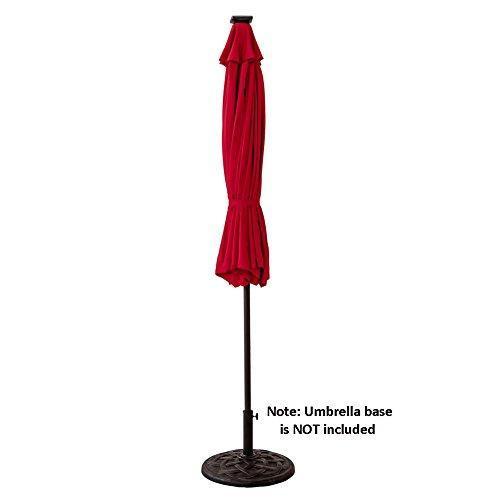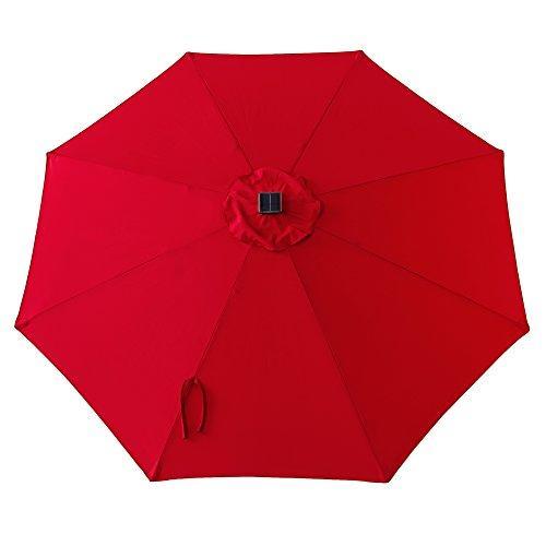 FLAME&SHADE 11 feet Solar Power LED Lights Outdoor Patio Market Umbrella with Crank Lift, Push Button Tilt, Red