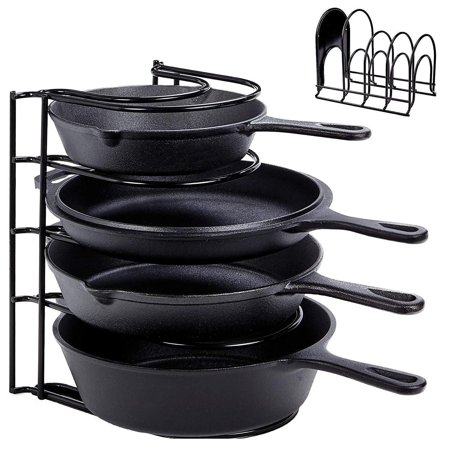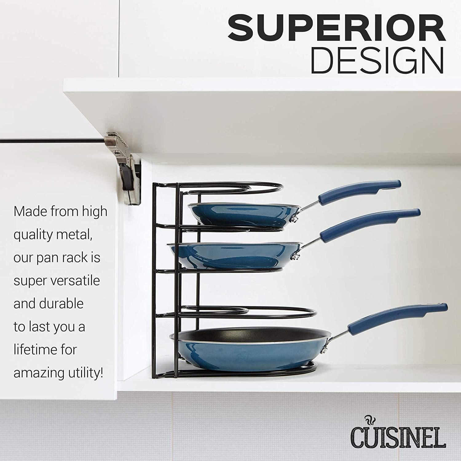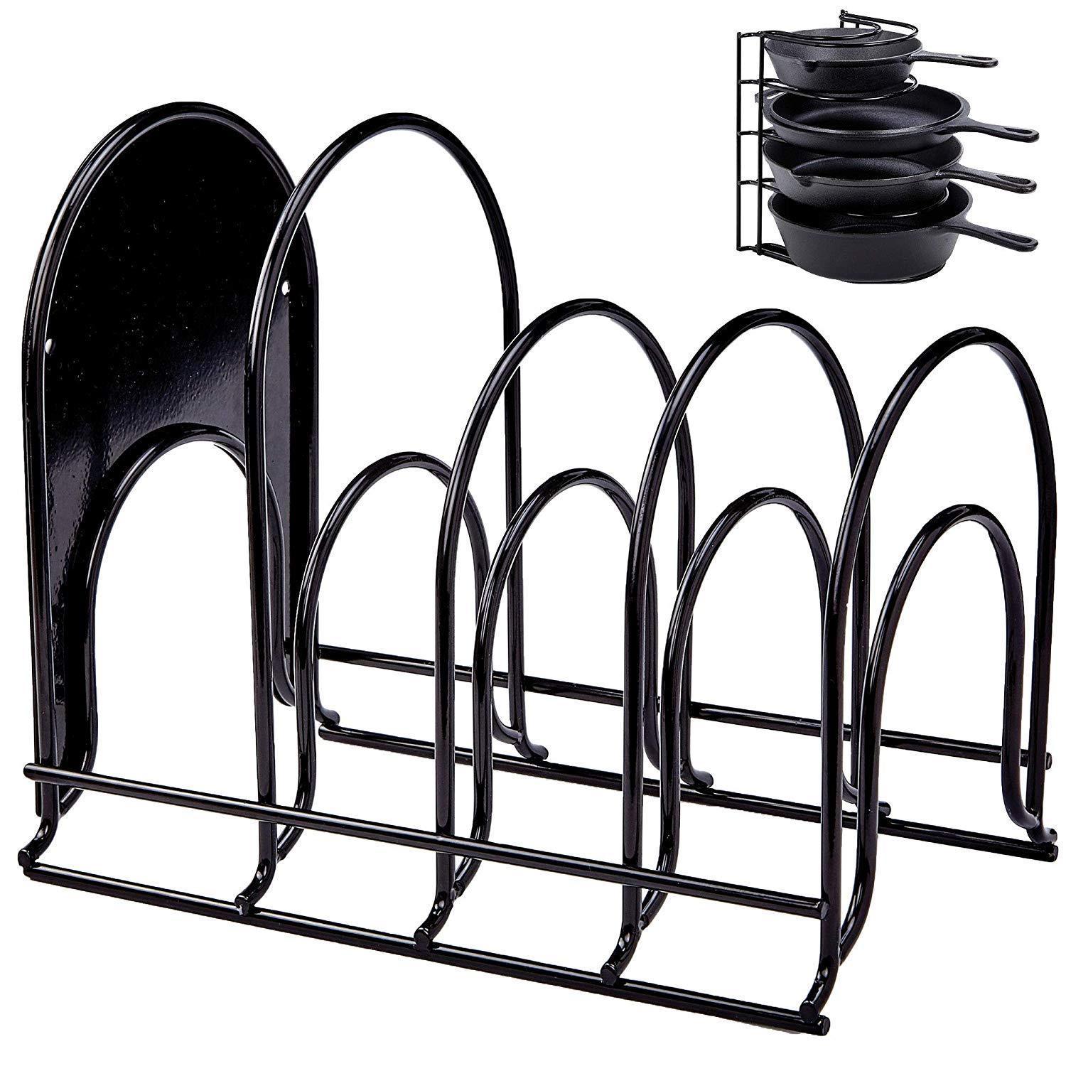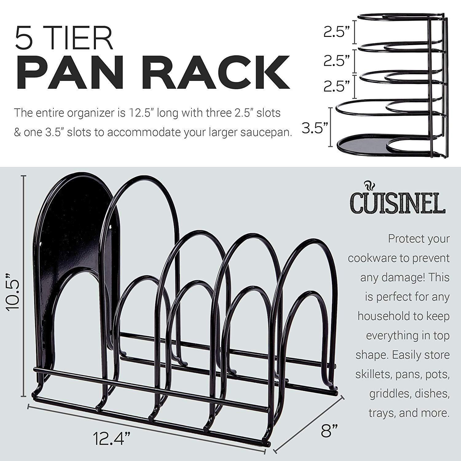 Heavy Duty Pan Organizer, 5 Tier Rack - Holds up to 50 LB - Holds Cast Iron Skillets, Griddles and Shallow Pots - Durable Steel Construction - Space Saving Kitchen Storage - No Assembly Required