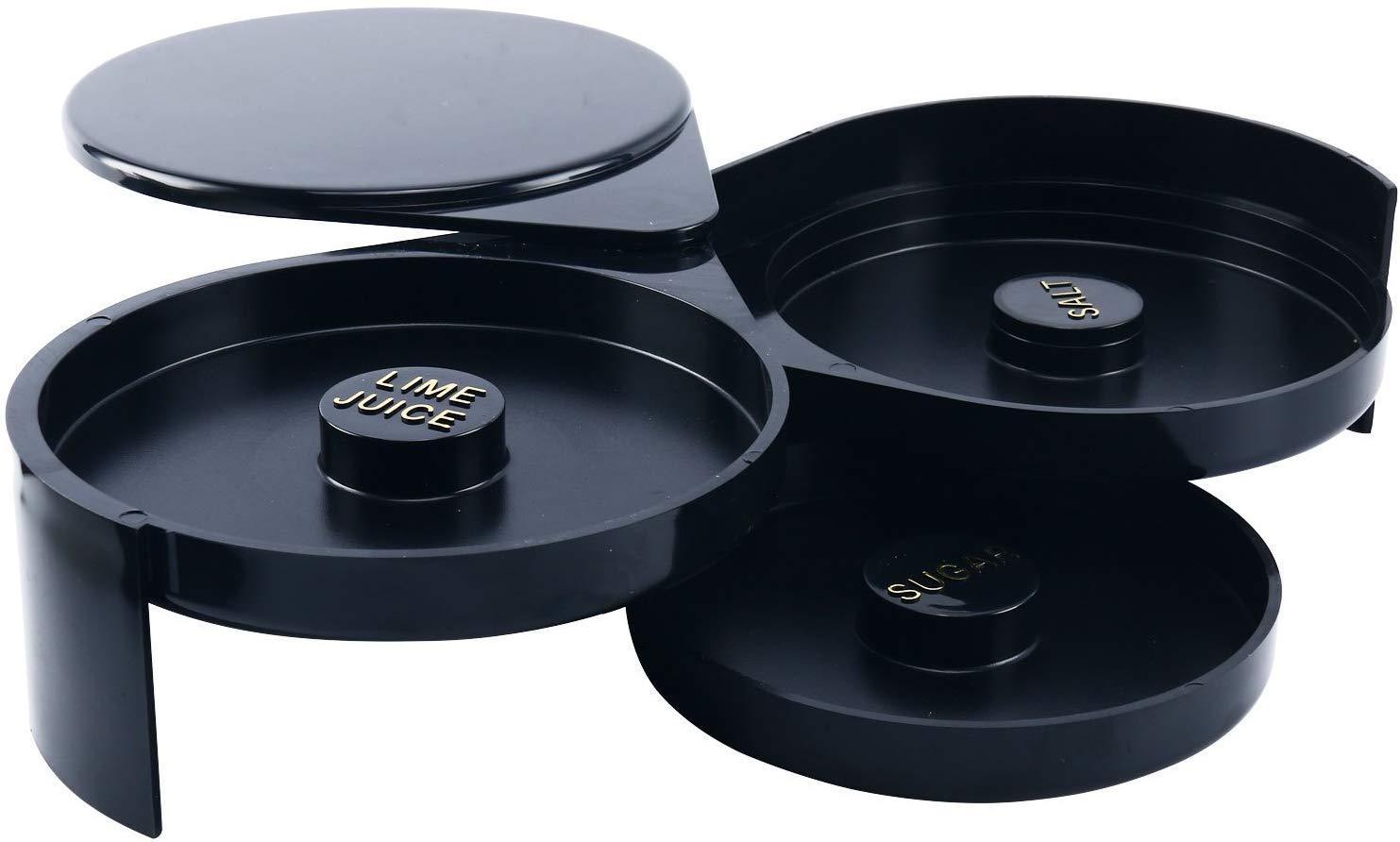 Made from durable food safe ABS plastic 3 Tier Glass Rimmer Great for Margaritas, Bloody Marys and Gimlets Labeled trays to avoid cross contamination Shifting compartment for functionality and storage