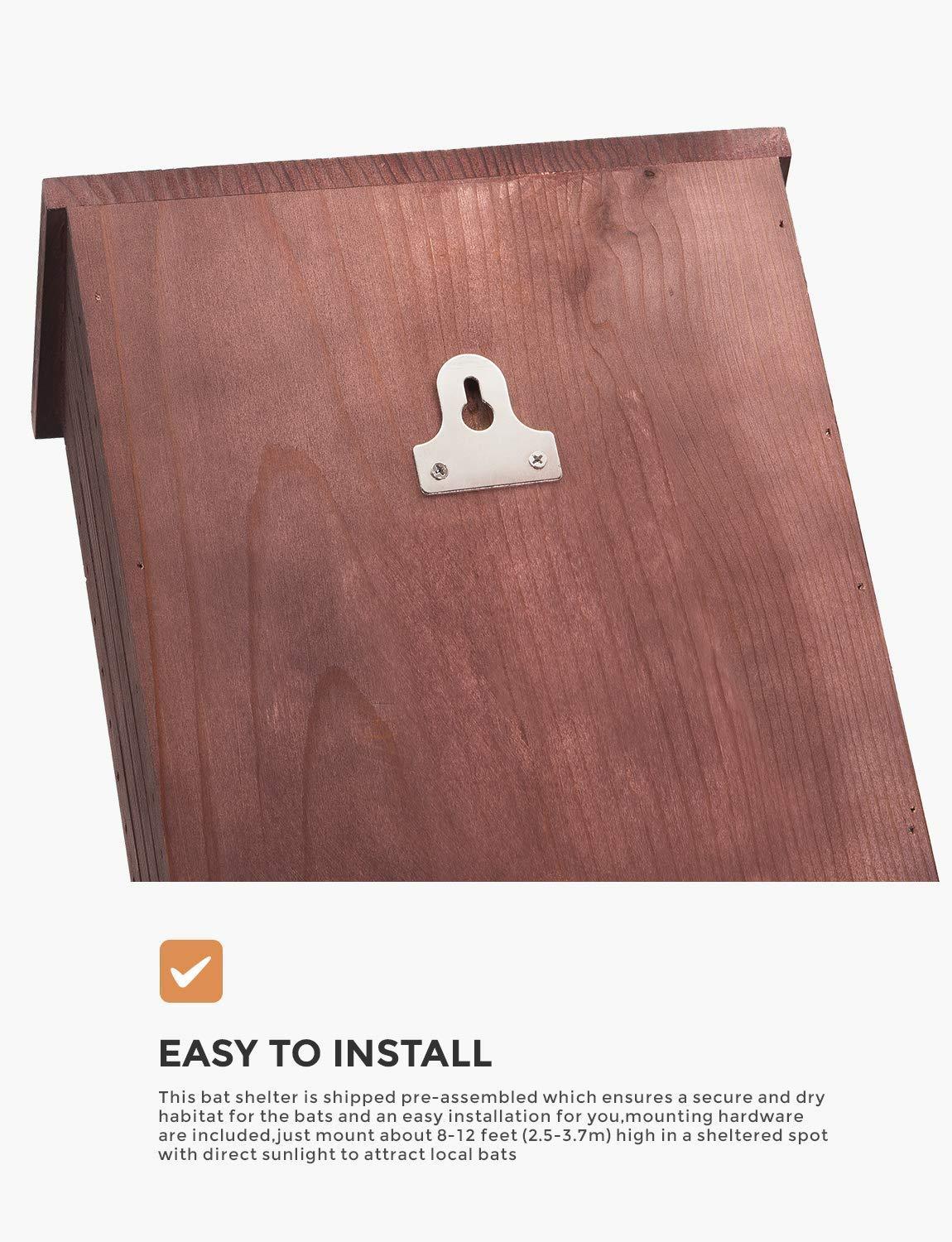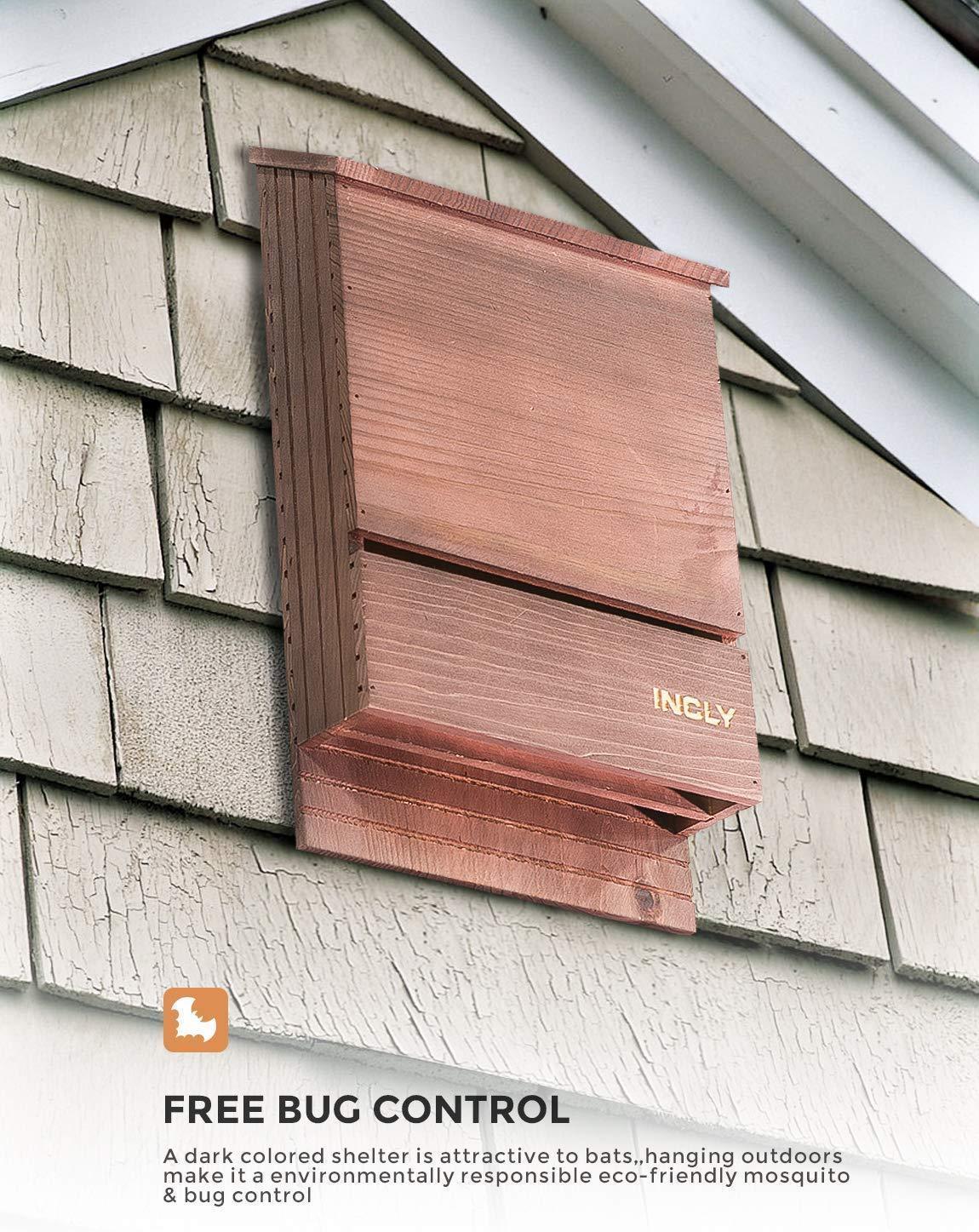 INCLY Bat House Kit for Outdoors 15"x9.2"x3.2" Shelter Box Double Chamber Dark Natural Cedar Wood, Pre-Finished Easy to Install