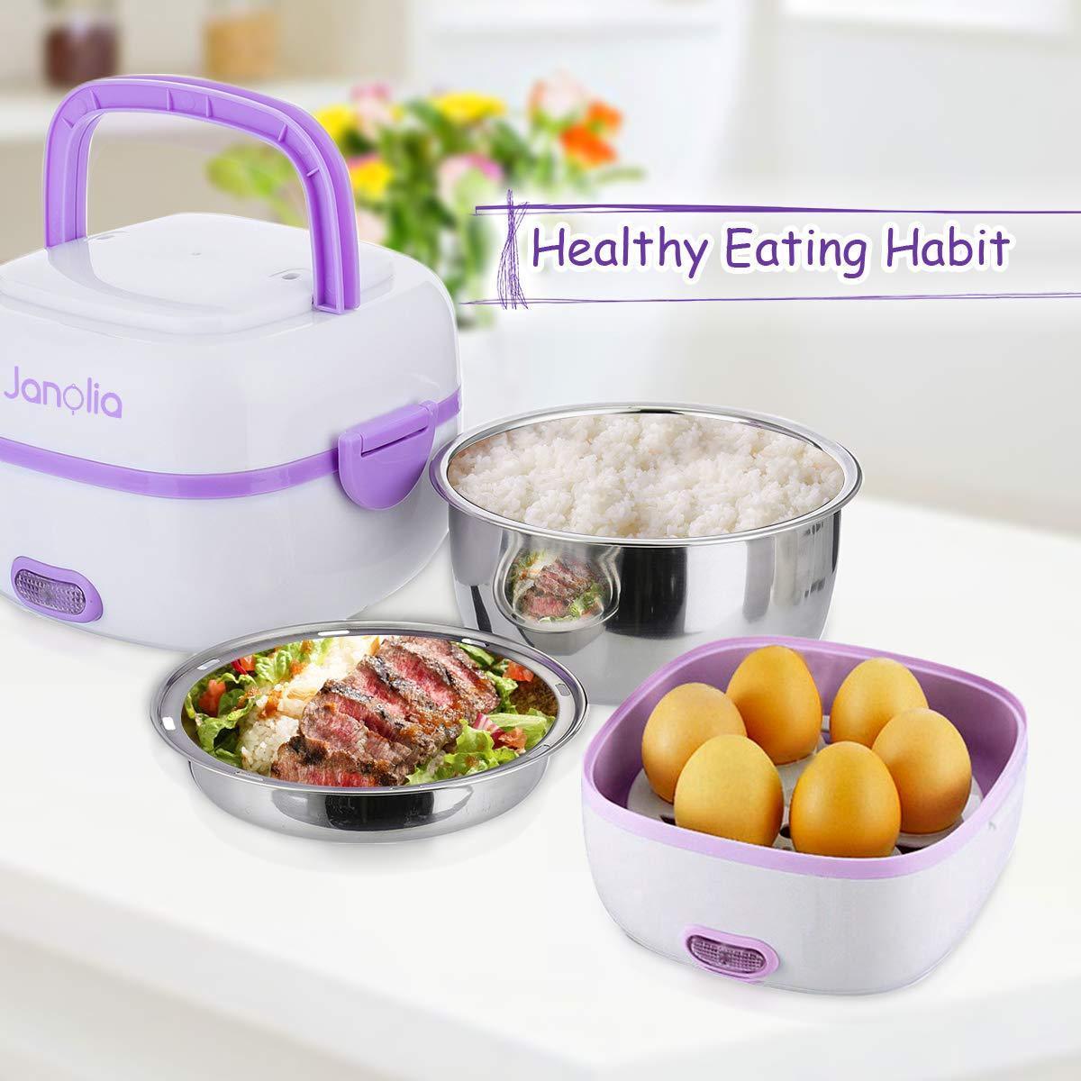 Janolia Electric Food Steamer, Portable Lunch Box Steamer with Stainless Steel Bowls, Egg Steaming Rack, Spoon, Measuring Cup
