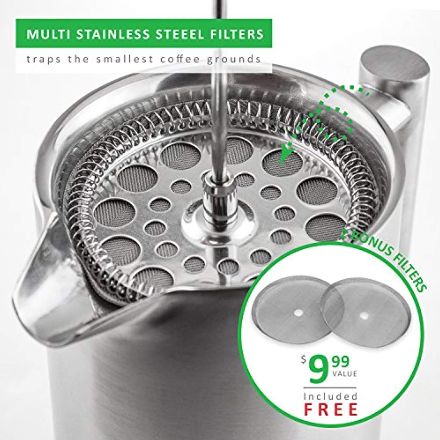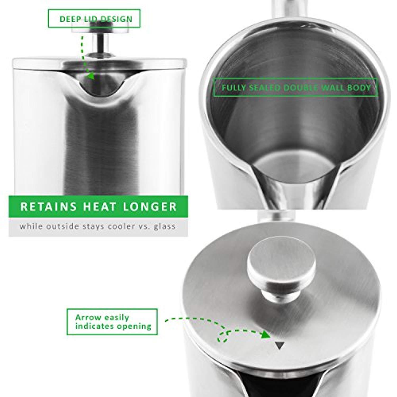 LINKYO French Press Coffee Maker - Brushed Finish Stainless Steel Coffee Press 34oz, 1L