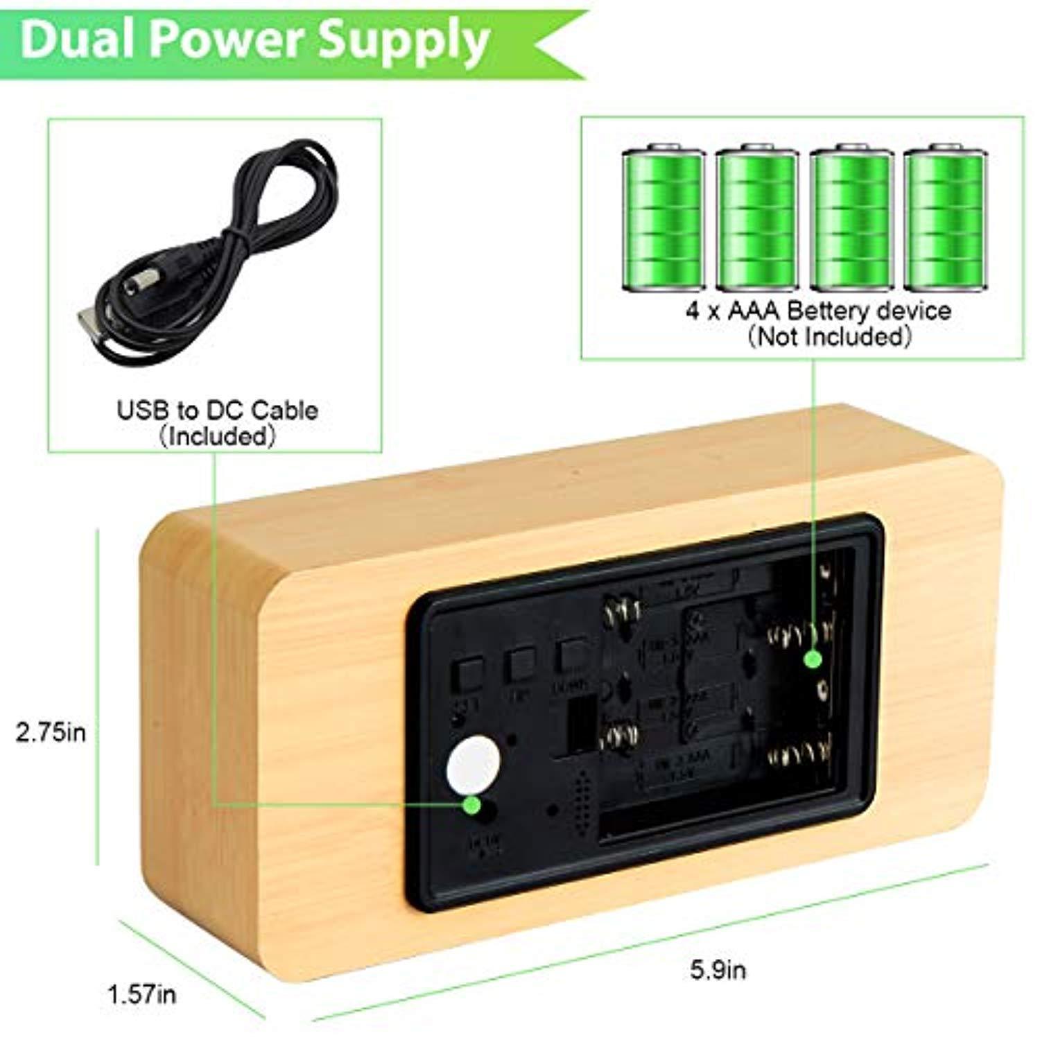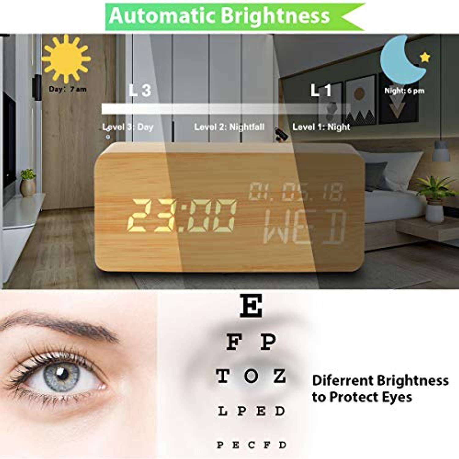 Luckymore Alarm Clock,Wood Alarm Clock Digital Clock LED Small Desk Clock Voice Command Beside Wooden Clock Modern Decoration Mini Alarm Clocks 3 Alarms 3 Level Brightness Show Time Date Week