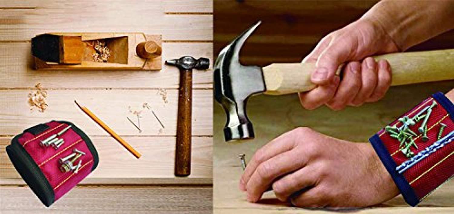 Embedded with super strong magnets for holding screws, nails, scissors, small tools, Bolts, bits and more,and other DIY projects. Super magnetic bracelets,perfect for home improvement, construction, wood working, carpentry, auto repair projects. Meticulously Made with Durable Nylon, a Padded Mesh on Backside Ensures the Free Flow of Air. Adjustable Size Fits all, Men and Women. Built-in super powerful magnets, perfect solution toolkit,No more losing your Nails or Screws in the middle of the job now it’s all in one place